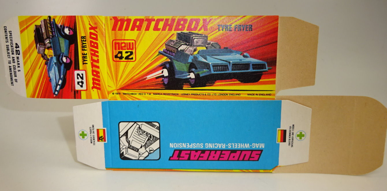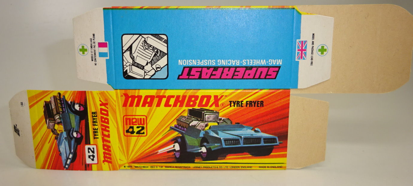 Lesney Matchbox 1-75 Superfast Series Made in England unfolded boxes No. 42B Tyre Fryer