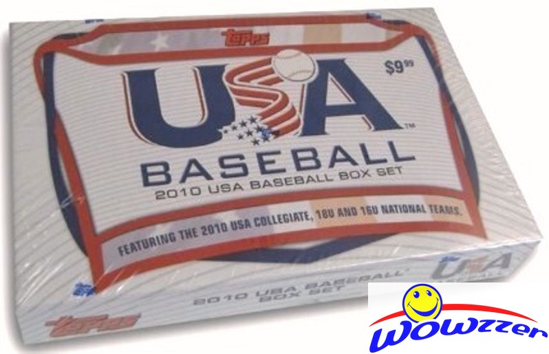 Wowzzer!! We are Proud to offer this 2010 Topps USA Baseball Factory Sealed Team Set Box!! This Factory Sealed Box includes all SIXTY-FIVE (65) Team USA ROOKIE Cards! All Cards are ROOKIE Cards of Future MLB Stars!! These Cards are all in MINT CONDITION and Come in the Original Factory Sealed Set! This Factory Sealed Set includes the First ever ROOKIE Cards in MINT Conditions of Every Player on the USA 16 and Under and 18 and Under Collegiate Teams.  This Set Features THE FIRST EVER ROOKIE Card of Los Angeles Dodgers Young Superstar COREY SEAGER!! His First Topps rookie is in 2016 and This Card was made 6 Years earlier in 2010 !!  PLUS this set includes Many other ROOKIE Cards of Top Young MLB Future Superstars including Alex Bergman, George Springer, Gerrit Cole, Anthony Rendon,Francisco Lindor, Bubba Starling, Albert Almora, Jackie Bradley Jr. and MANY MANY MORE!! Who knows which one of these Players will be Future Major League Superstars!! What if they Made a 1995 Albert Pujols, 1989 Derek Jeter or 2002 Buster Posey High School Rookie Card? This is a Great FACTORY SEALED ROOKIE Set to put away for a few years and see which Kids will be MLB Superstars!! This was a limited Produced Product and Sold RIGHT OUT!! Thanks