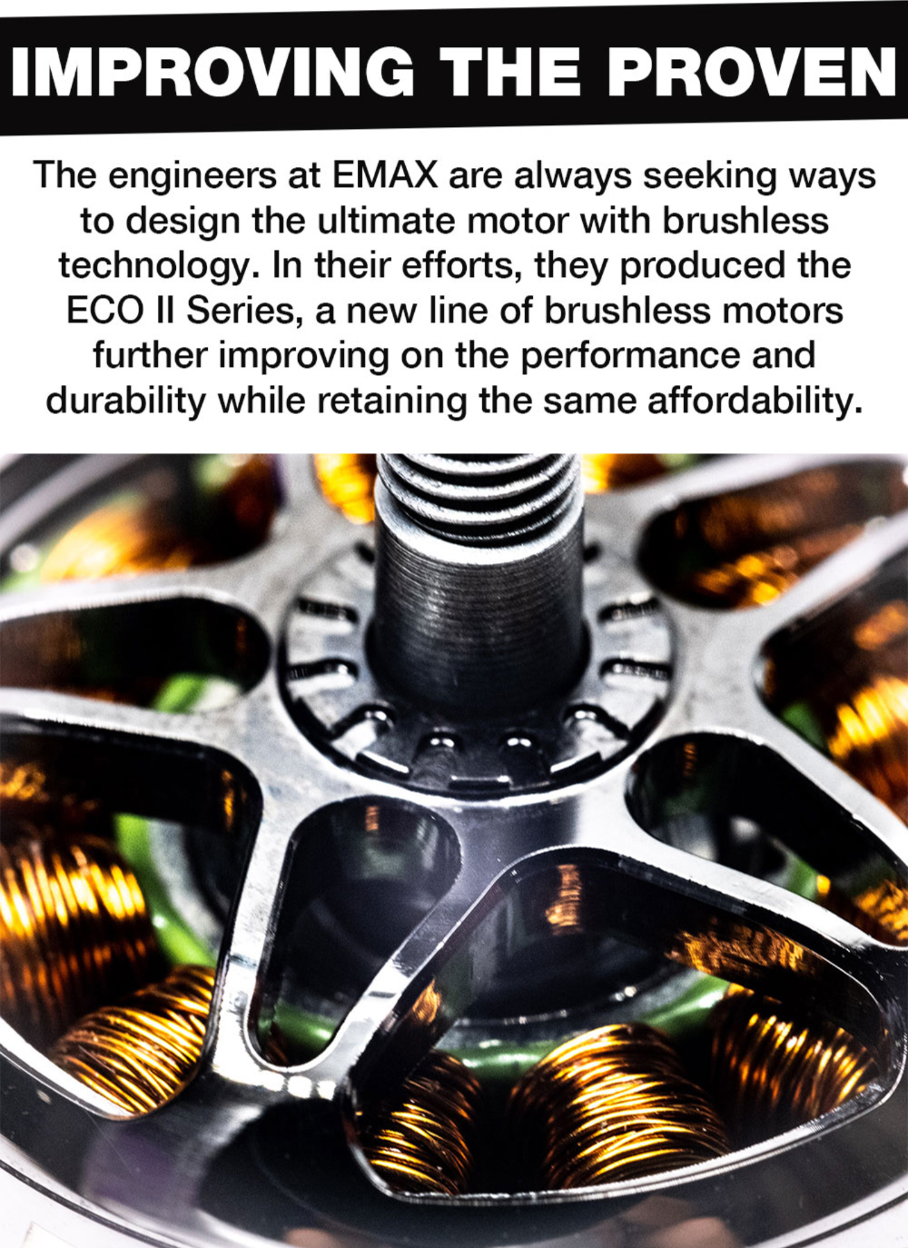 ECO Series,a new line of brushless motors further improving on the performance and durability while retaining the same affordability.