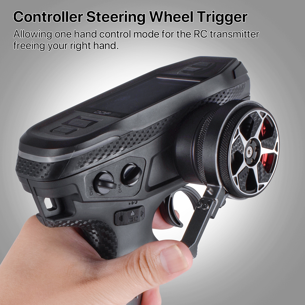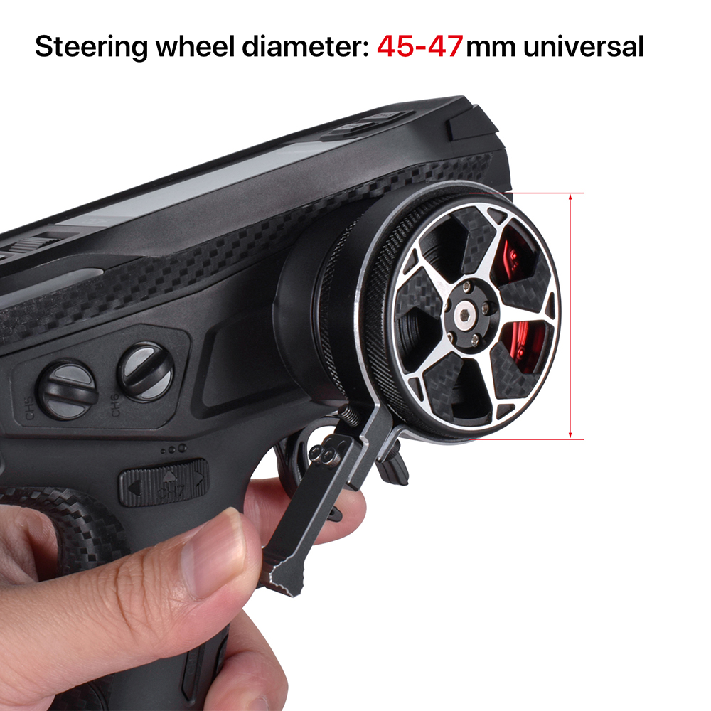 2. Anodized Anti-Rust Treatment : RC transmitter steering wheel trigger is CNC processed, and the anodized aluminum alloy is durable and not easily deformed.