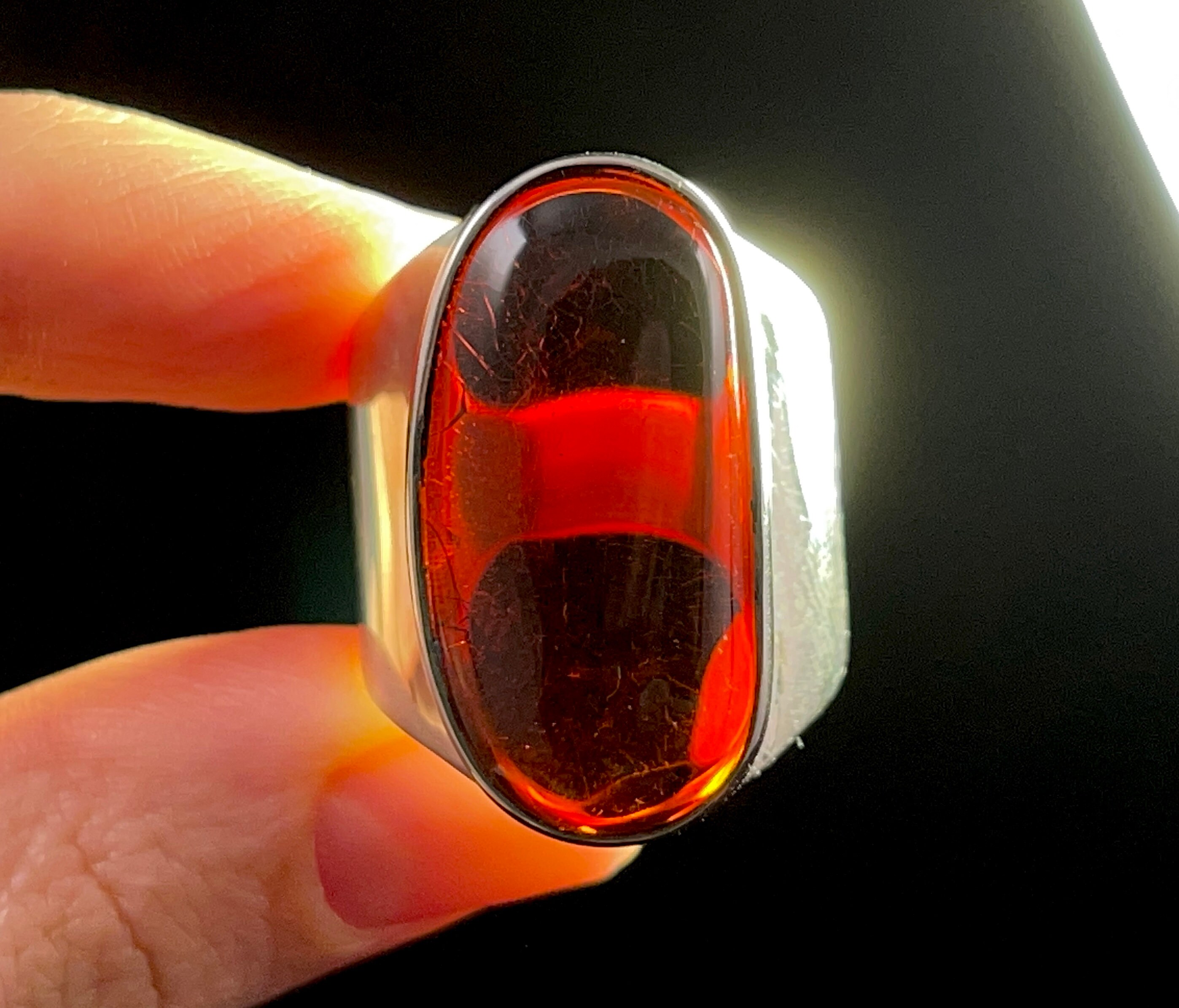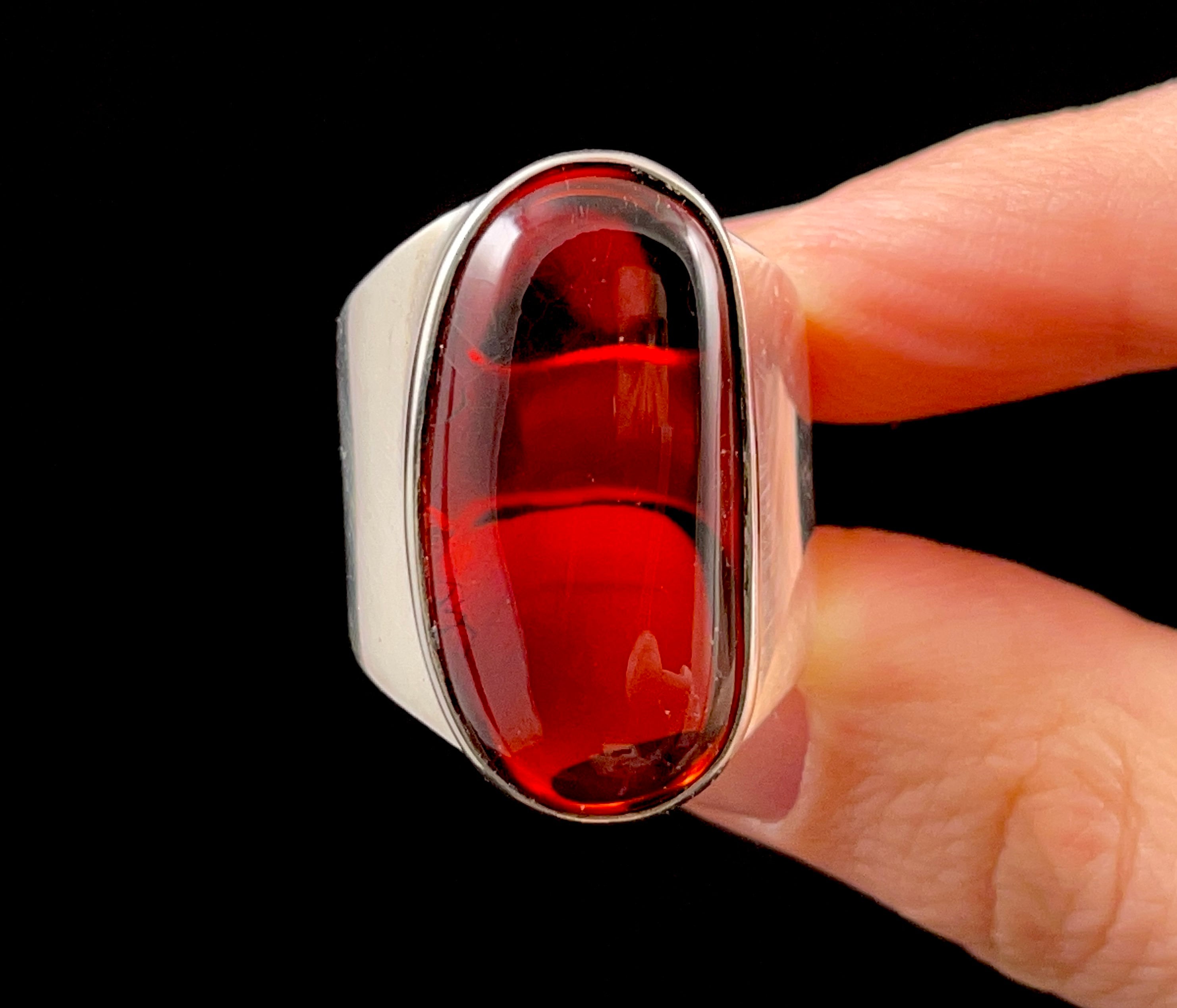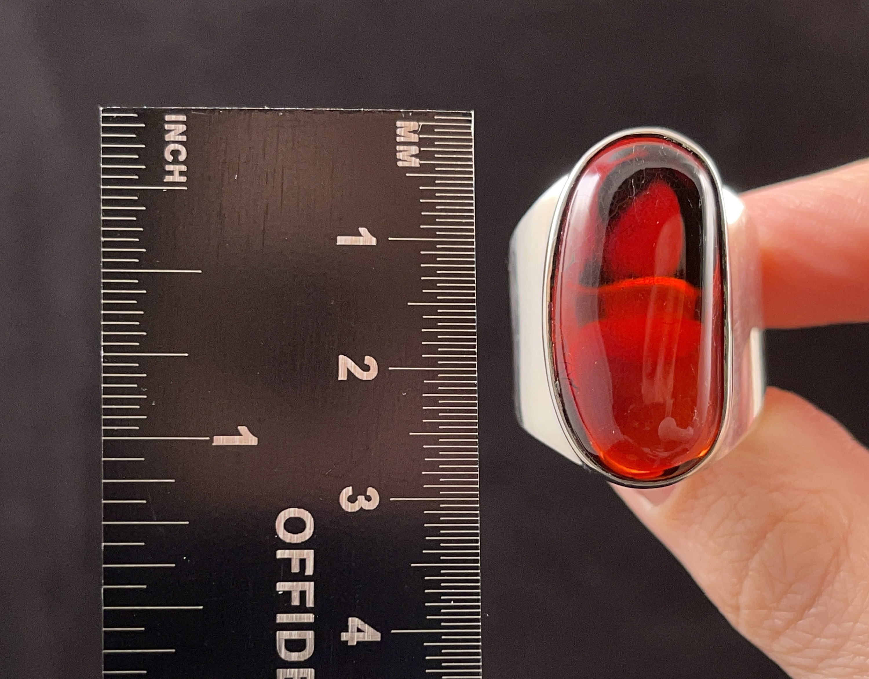 RED AMBER Ring - Sterling Silver, Size 8 - Stone Crystal Handmade Jewelry 52639