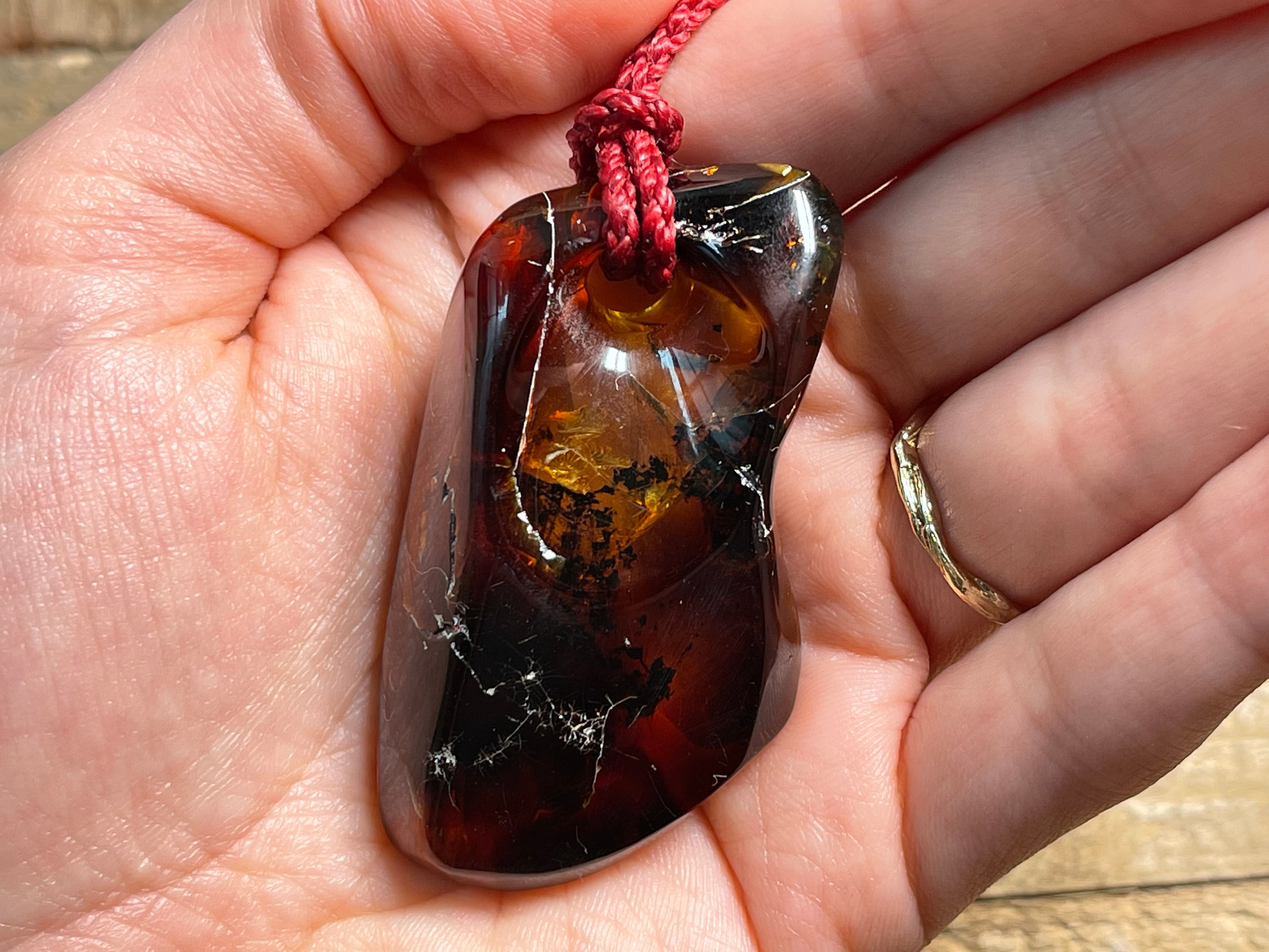 AMBER Crystal Necklace Pendant, Handmade Jewelry, Healing Crystals Stones, 48531