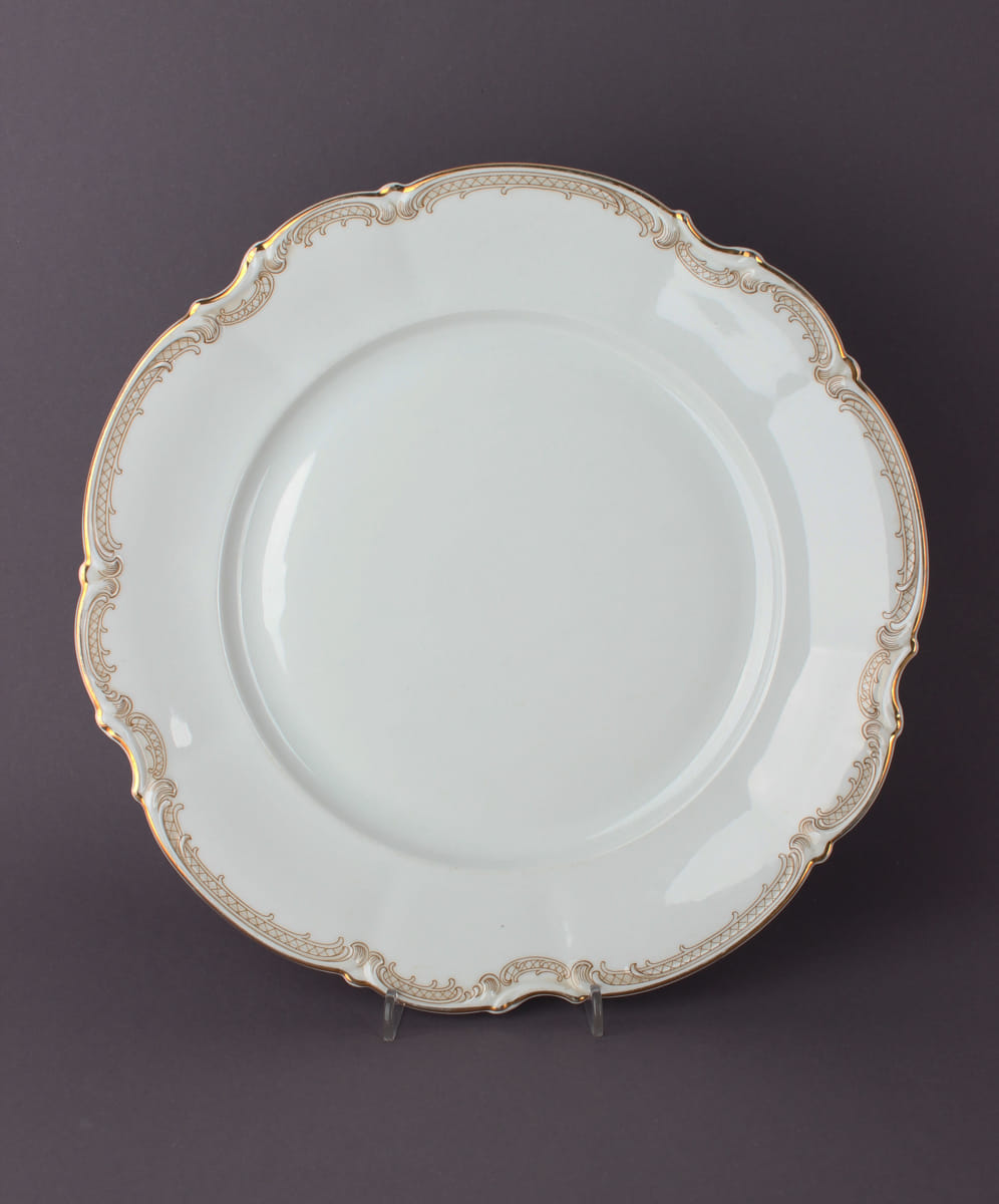 Weißes Porzellan, GoldrandDurchmesser, 32,8 cmunbeschädigt, sehr gut erhalten.