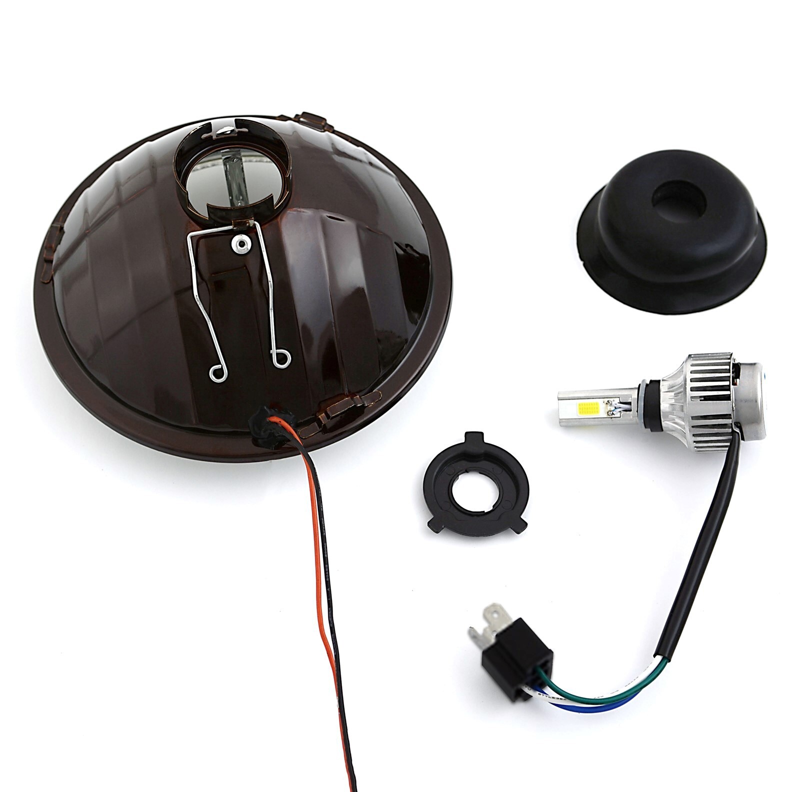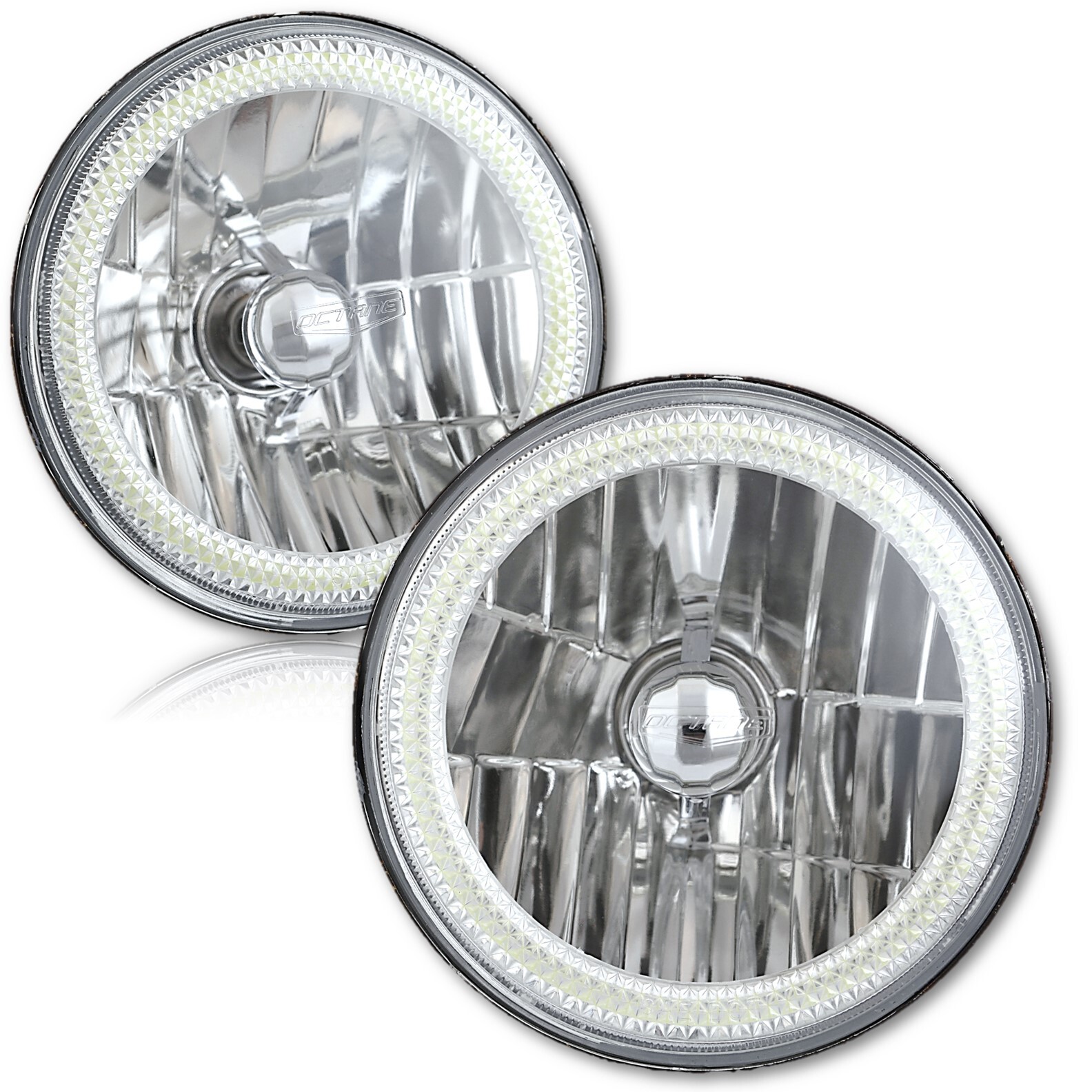 THIS LISTING IS FOR A NEW PAIR (2 bulbs) OF 7" 12 VOLT HIGH/LOW BEAM 6000K LED HEADLIGHTS WITH WHITE COB LED HALO ANGEL EYE RINGS. THESE HALO RINGS ARE EXTREMELY BRIGHT AND CAN EASILY BE SEEN DURING THE DAY AND NIGHT EVEN WITH THE HEADLIGHT ON. THESE HEADLIGHTS HAVE GLASS LENSES. THIS SET INCLUDES 2 LOW/HIGH BEAM HEADLIGHTS WITH 18/24W 6K LED LIGHT BULBS AND H4 TO H13 ADAPTER WIRING PLUGS. LED RING IS POWERED WITH A POWER AND GROUND WIRE THAT CAN BE SPLICED DIRECTLY TO THE CARS 12V ELECTRICAL SYSTEM. HALO RINGS CAN BE CONNECTED TO PARKING LIGHTS, TURN SIGNALS, HEADLIGHTS, OR A SEPARATE SWITCH. THESE ARE DOT SAE APPROVED. WE WILL TAKE EXTRA CARE IN PACKAGING.