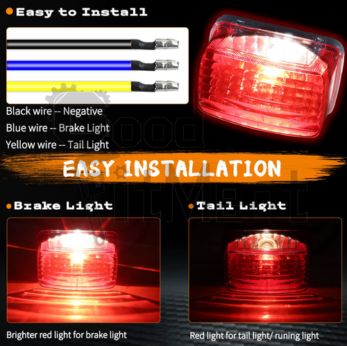 ✅-【EASY INSTALLATION】Using the harness connector, plug the 3 wires into the connector and into your ATV. Black--Negative; Blue--Tail light; Yellow--Brake light. *Before plug into connector, ensure that the function corresponding to each wire is the same as the stock one.