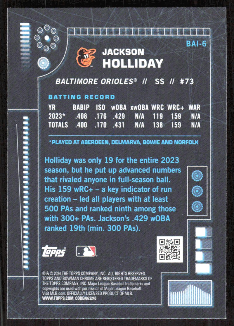 2024 10228C Bowman Chrome AI REFRACTOR JACKSON HOLLIDAY Baltimore Orioles #BAI-6