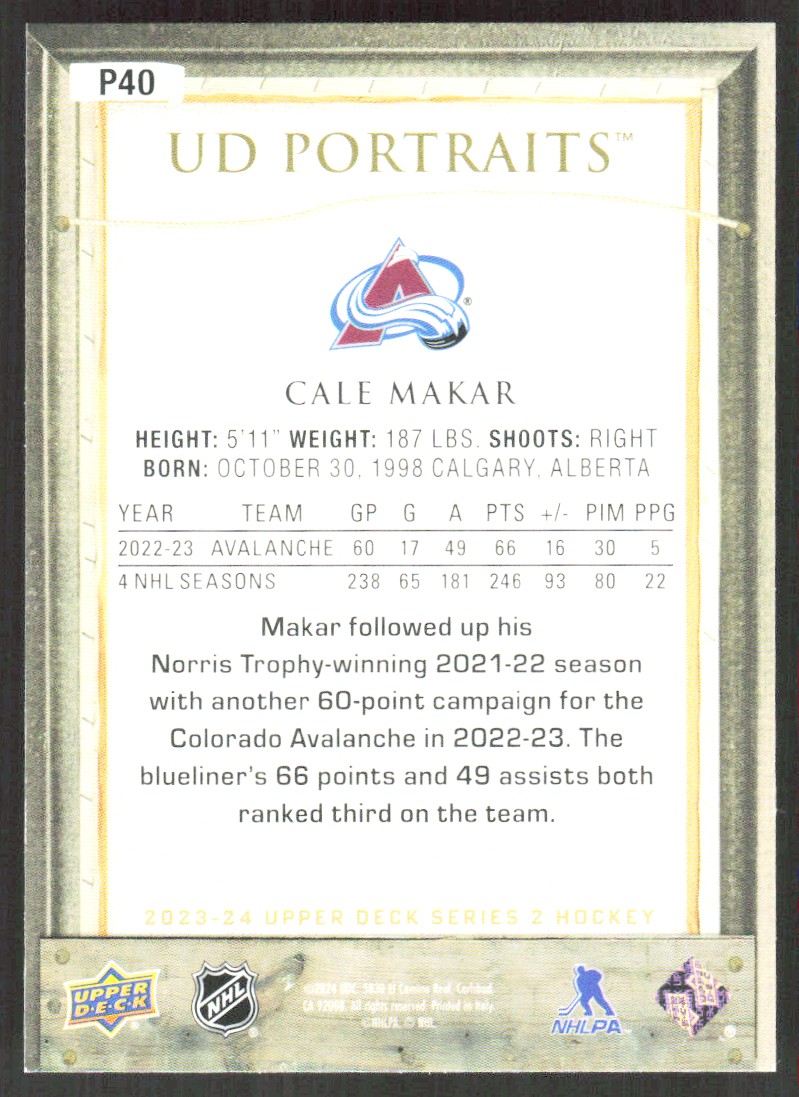2023-24 10293C Upper Deck Portraits Cale Makar Colorado Avalanche #P40