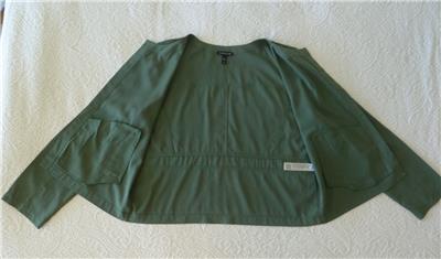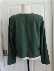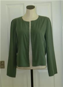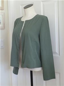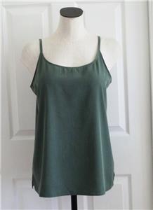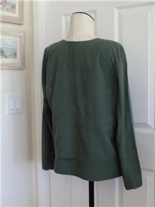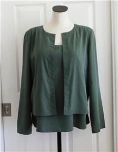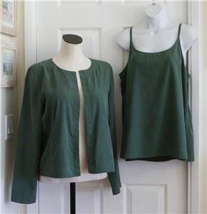 Here for your consideration is a lovely two-piece set by EILEEN FISHER. Tag size M, measurements provided below. Earthy forest green, in my favorite fabric, 74% Tencel/Lyocell, 26% Recycled Poly, machine wash, line dry. Lightweight (both pieces combined are under 12 ounces), versatile and comfortable. Open topper jacket has angled welt pockets, nice top-stitched seaming in the back. The cami top has adjustable spaghetti straps, 2.5" side slits, and a longer length. Rare set in excellent condition, taken on one vacation. Please check out all 18 photos to fully appreciate. Note: On my screen photo #3 taken with a flash comes closest to the actual color.
