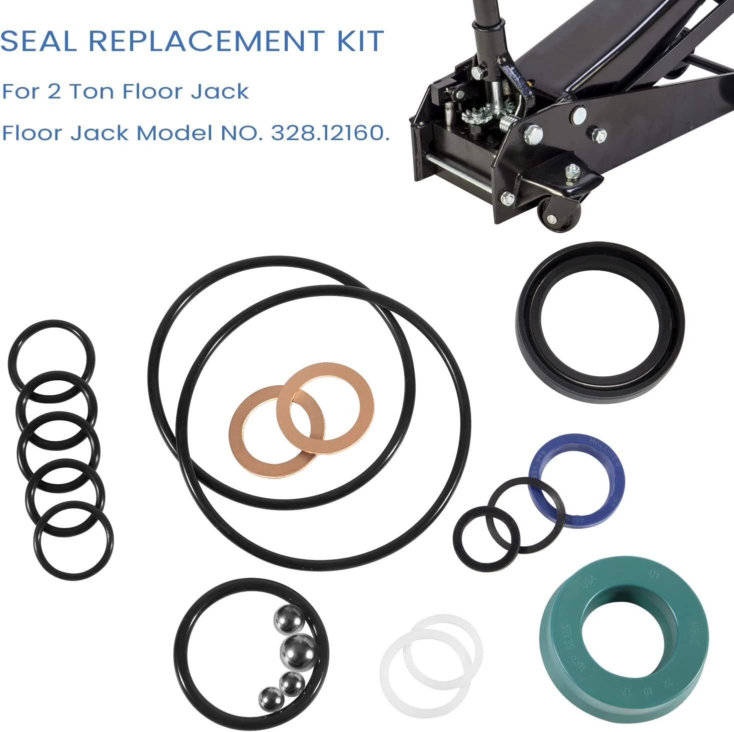 This floor jack seal replacement kit is designed for 328.12160 Sears (Craftsman) Floor Jack. Universal kit for all production years. Meet or exceed for OEM specifications.