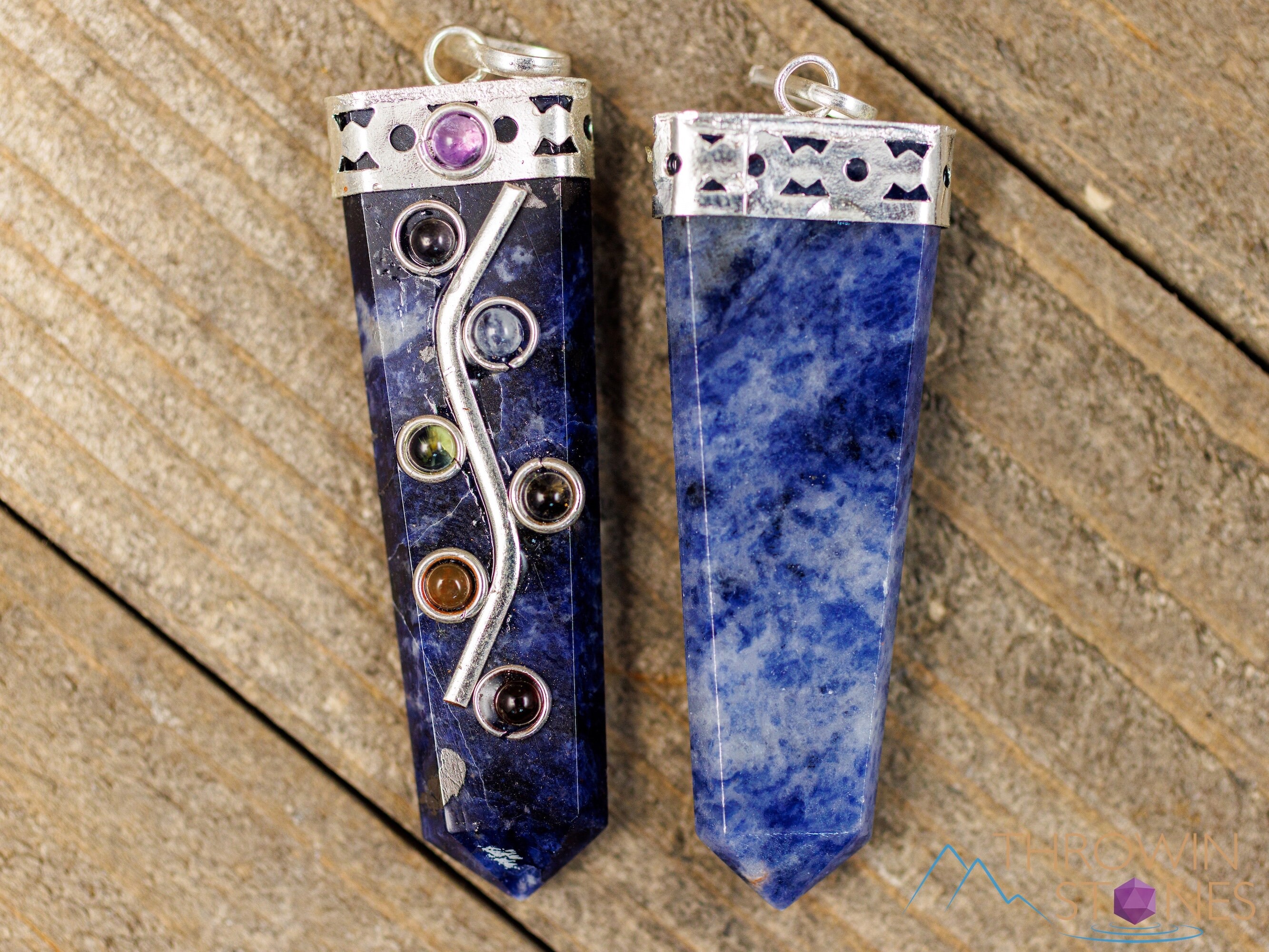CHAKRA & SODALITE Crystal Point Pendant, Handmade Jewelry, Healing Stones, E2069