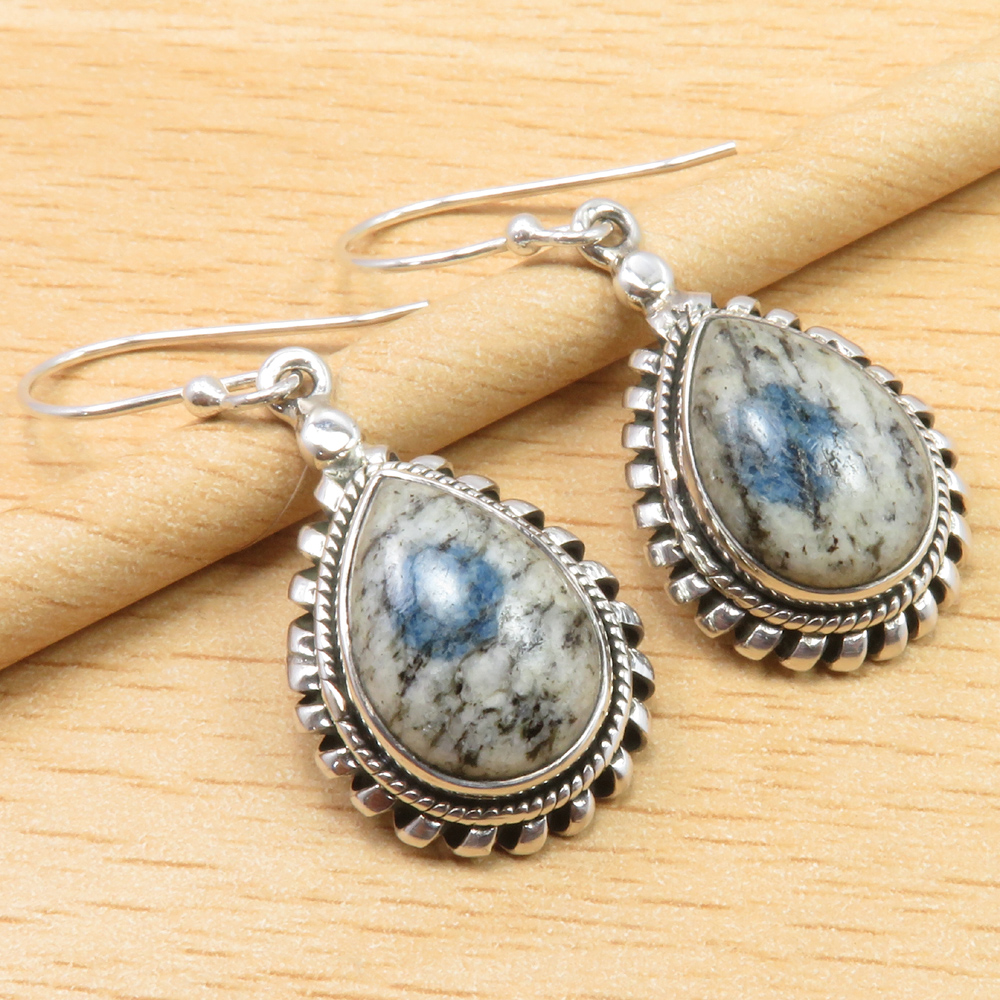 DAILY HOT DEALS Silver K 2 JASPER Earrings 1.6" 925 Traditional Rare Jewelry