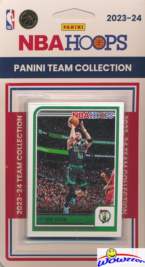 Wowzzer!! We Are Proud to offer this Brand New Boston Celtics 2023/24 Panini Hoops NBA Basketball EXCLUSIVE Factory Sealed Limited Edition Factory Sealed Team Set with Jayson Tatum, Jaylen Brown, Derrick White, Malcolm Brogdon, Robert Williams III, Payton Pritchard, Al Horford, Kristaps Porzingis, and a Jordan Walsh Rookie card #247. This is a MUST HAVE Collectible for Fans of this NBA Team! Makes a Great Gift! Check out our Amazing Prices and Large Selection of Factory Sealed Boxes, Sets, and Singles of MLB, NFL, NBA, NHL, Soccer & Much More!!