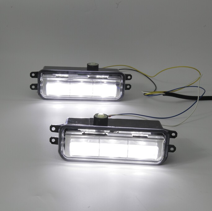 - 2pcs Black Lens LED Front DRL Turn Signal Lights
