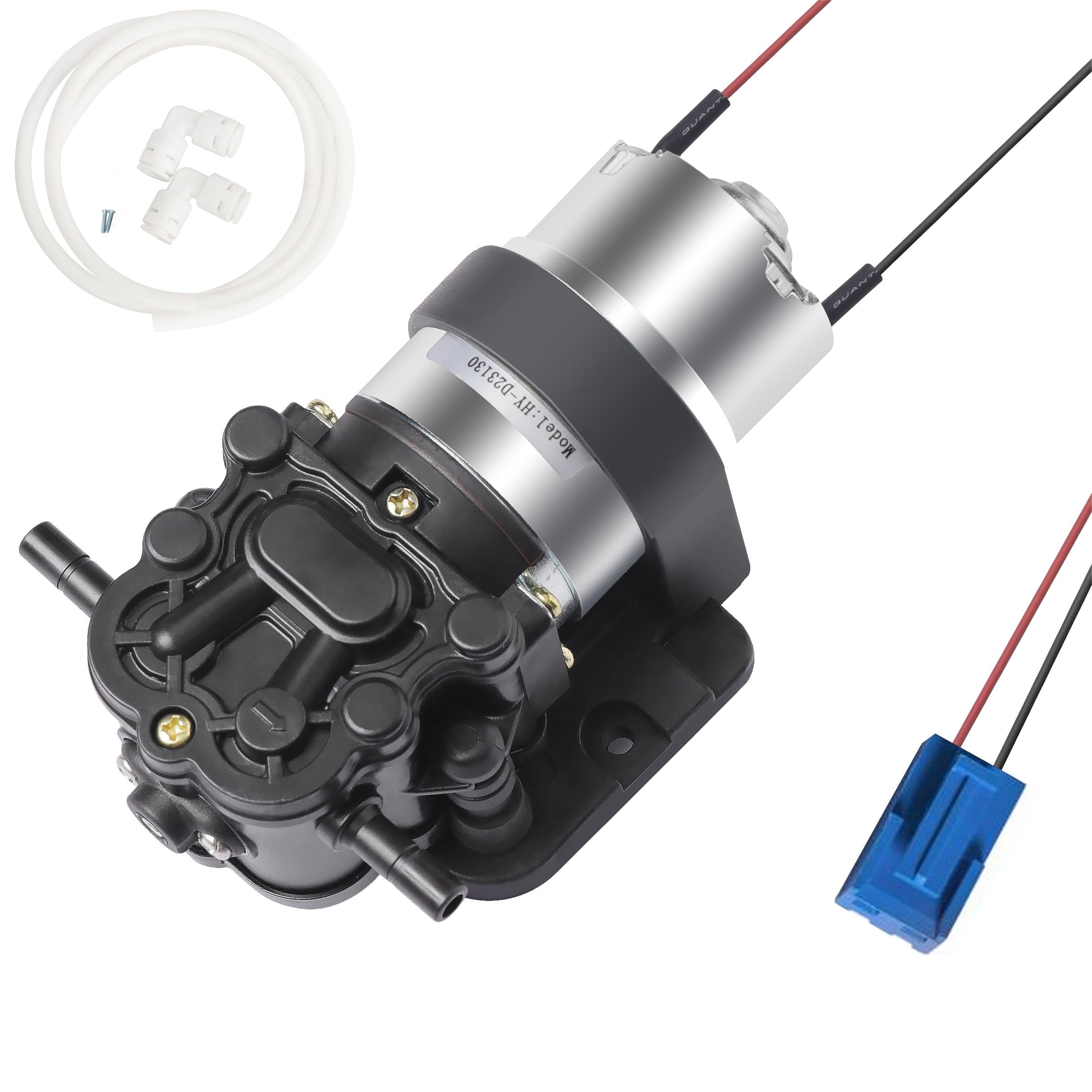 Rated Volts :DC 12V Amp Draw : 0.35-0.5AMP Pressure : 30PSI. Max Flow Rate : 1.2L/min Vertical Suction Lift : 4.2ft (1.3m) Inlet/Outlet:1/4 inch (6.35mm) Working Temperature Range : 0~60°C /32~140°F Application: for water dispenser ,medical equipment,cooling system, home appliance, Garden and Camping Installation step: 1) Unplug the dispenser 2) Take off water pipe connection from the broken pump 3) Find the power cord socket from the broken pump and unplug it. 4) Unscrew the two screws from the old pump( bracket) and take the pump out 5) Cut the power cord from old pump and connect it to the new one. It is to leave the red wire and black wire about an inch from the new pump. If the connector of pump is same, just plug in the connector of water dispenser. 6) Screw new pump to dispenser and plug in the power cord of pump.Re-install water pipe connection to the new pump. Next just test if the pump work or not. Return and Refund: If you are not satisfied with your purchase,please contact us directly. We stand behind every product we sell. All items carry a one year , unless otherwise stated. How To Use: 1) Unplug the dispenser 2) Take off water pipe connection from the broken pump 3) Find the power cord socket from the broken pump and unplug it. 4) Unscrew the two screws from the old pump( bracket) and take the pump out 5) Cut the power cord from old pump and connect it to the new one. It is to leave the red wire and black wire about an inch from the new pump. If the connector of pump is same, just plug in the connector of water dispenser. 6) Screw new pump to dispenser and plug in the power cord of pump.Re-install water pipe connection to the new pump. Next just test if the pump work or not. Frequently Asked Questions: 1) The pump doesn’t work. :Solution: Please try to use 12v power source to test the pump singly,check the pump work or not. 2) The pump operate, but no water or very little water come out. Solution: please check the silicone tube and make sure the tube is not bending, it should be straight, otherwise the water can't come out or just very little flow rate.