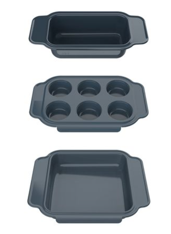 Set includes Muffin Pan, Square Pan, and Loaf Pan.