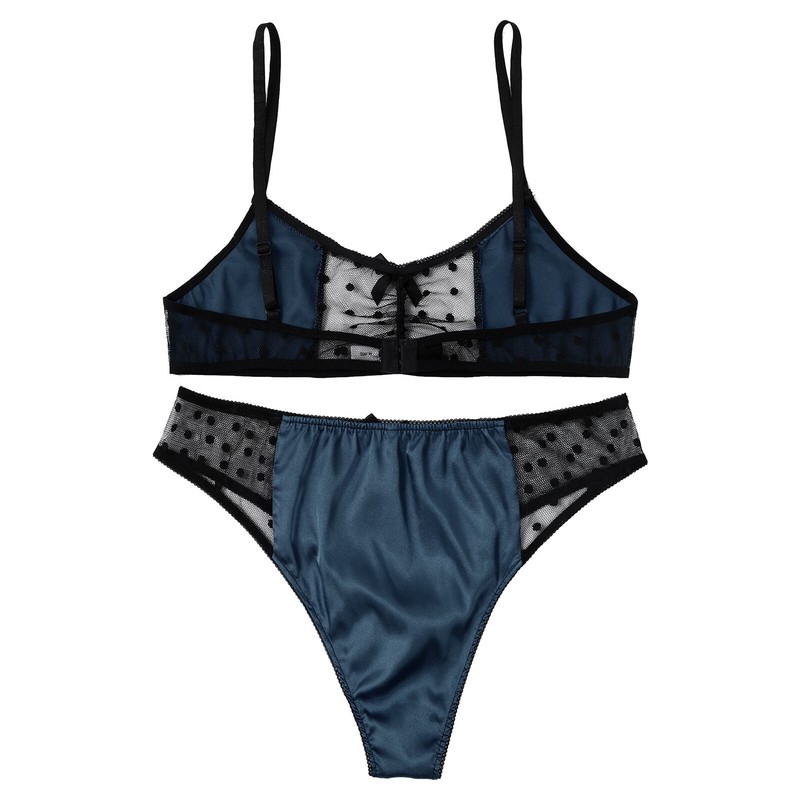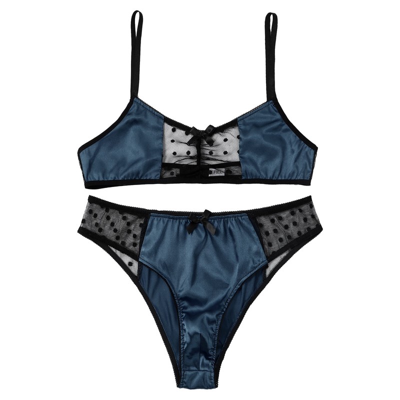 Soft and smooth satin touch feeling, see-through mesh at the front chest and both side of waist, decor with bowknot.