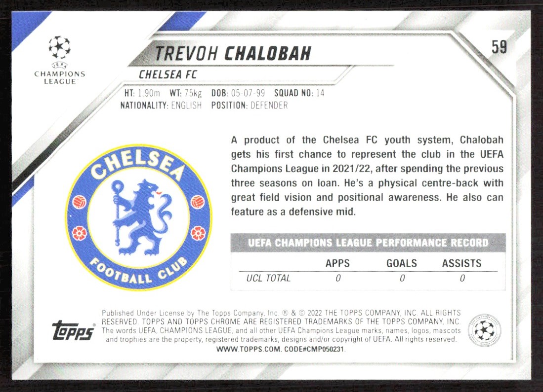 2021 1509D Topps Chrome UEFA Champions League Trevoh Chalobah Rookie Chelsea FC