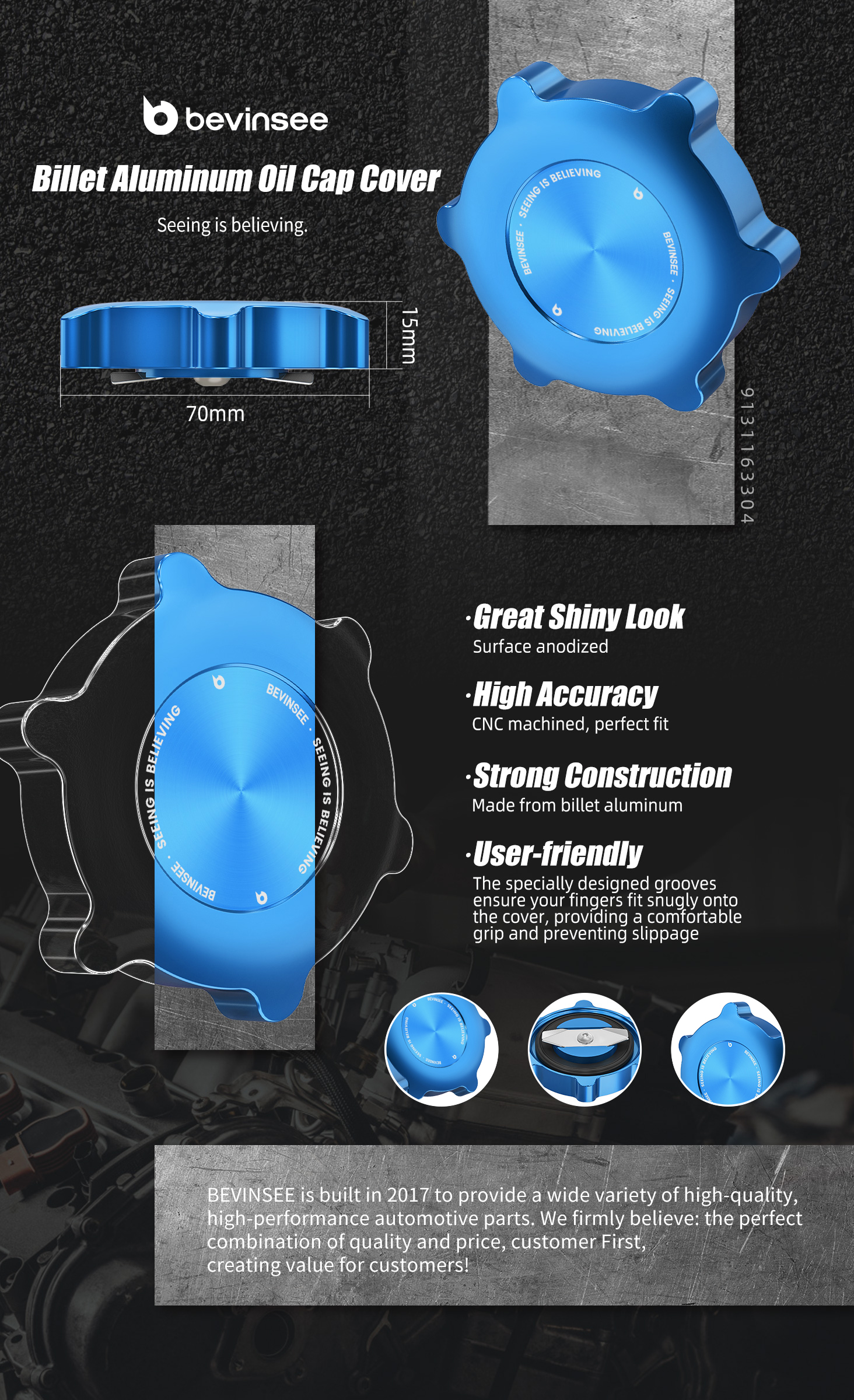 -- Un ajustement parfait. Le bouchon est prêt à l'emploi. Il ajoute une touche de qualité métallique au compartiment moteur de la BMW, rempli de plastique.