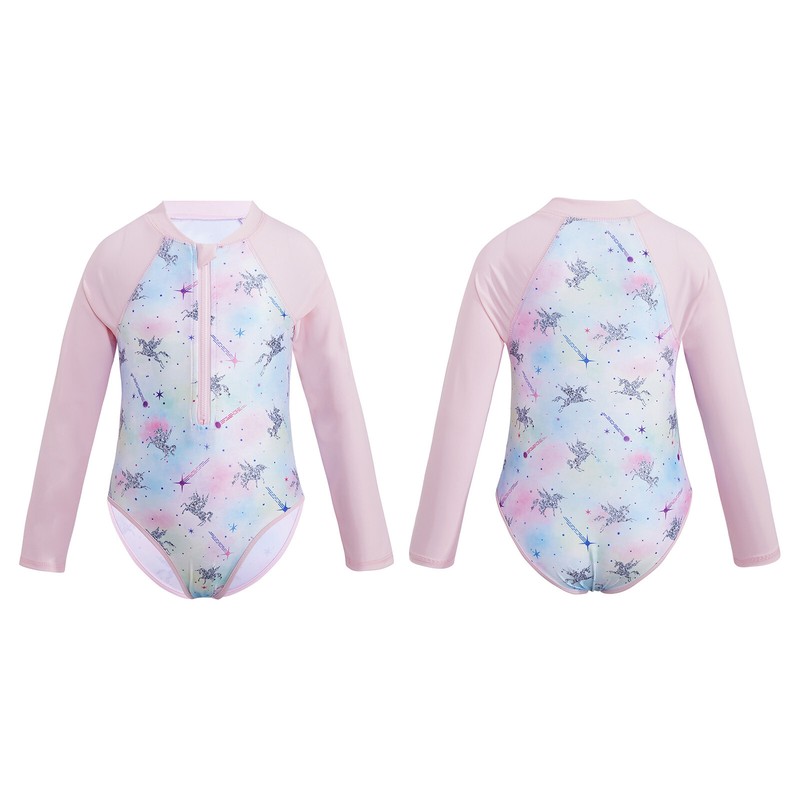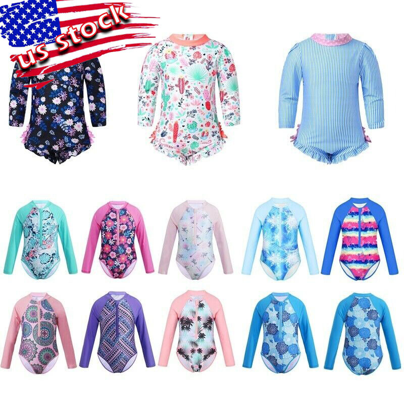 US Kids Girls Zipper Rash Guard Swimwears Sun Protection Bathing Suit Swimsuit