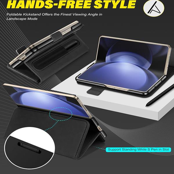 Finde Deinen Stil! Und schütze Dein Smartphone mit der praktischen Klapphülle vor Kratzern und Co. Das Case aus robustem Kunstleder passt genau auf dein Samsung Galaxy Z Fold 6 und schützt durch das Portemonnaie-Design auch das Display. Die seitlich aufstellbare Funktion ermöglicht Ihnen auch das Abspielen von Videos, ohne dass Sie das Samsung Galaxy Z Fold 6 in der Hand halten müssen. Dank der hochwertigen Verarbeitung und des perfekten Halt bietet diese Hülle einen hervorragenden Schutz für Ihr Samsung Galaxy Z Fold 6.
