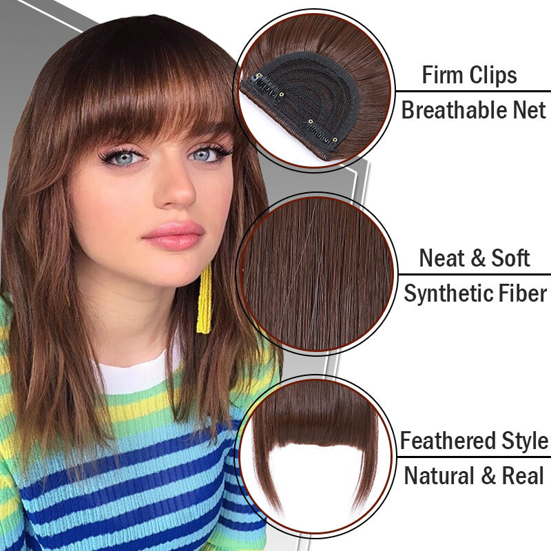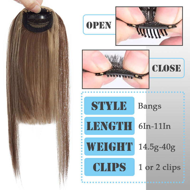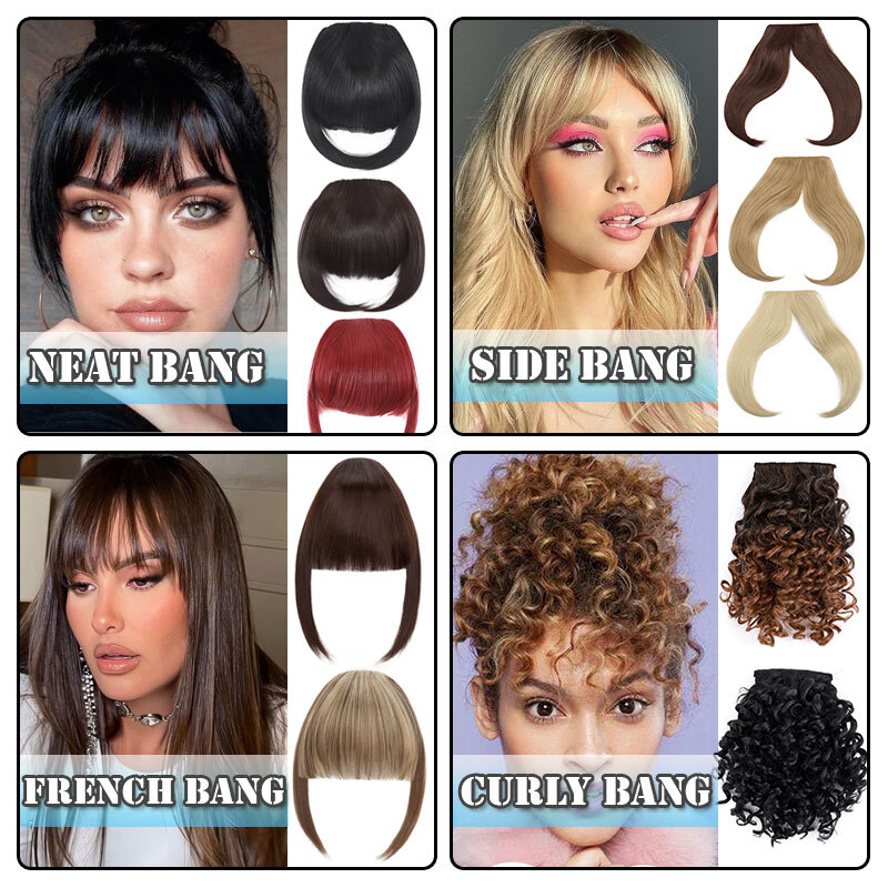 High quality synthetic clip in fringe bangs extension to make up you head. The hair are silky and soft, Grade A , specially selected for you.