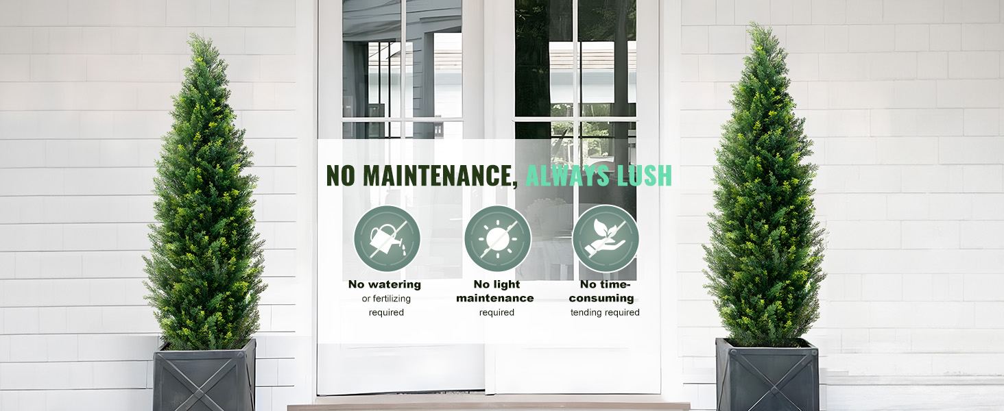 This artificial tree stays green year-round with no maintenance needed—no watering, fertilizing, or pruning. Made with high-quality PE foliage for realistic appearance and durability, it fading-resists and suits any space, making it easy to create a natural look.
