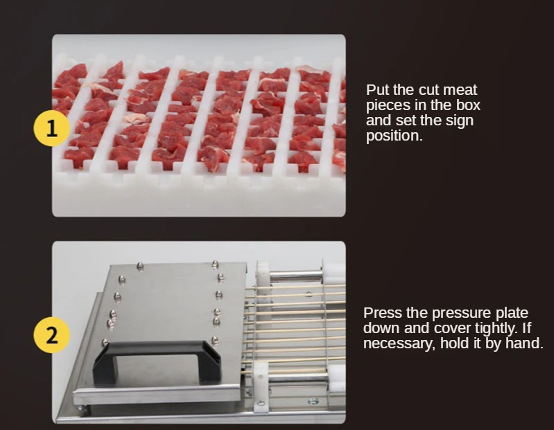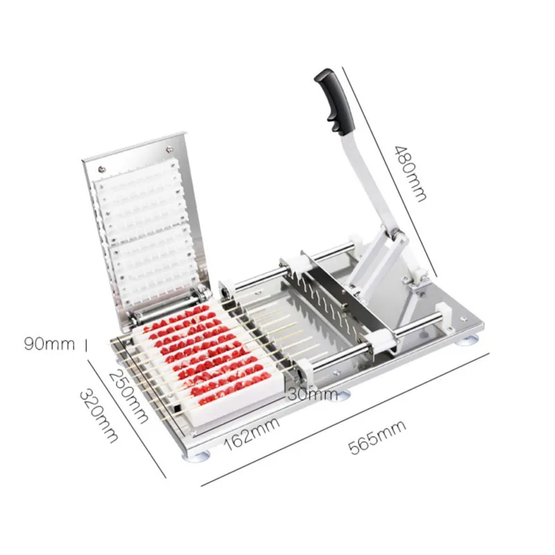 Can wear cattle, sheep, chicken skewers, chicken Zhenchuan, chicken heart string, squid string, tofu pieces, kelp knot and other string products; wear out the string size is uniform, clean, no rub, good taste; users can according to preferences Add any fat to the skewer at any position. The length of the skewer can be adjusted within the required range. It can be used freely, no matter if it is shaken or shaken. It is an ideal choice for meat producers and individual users.