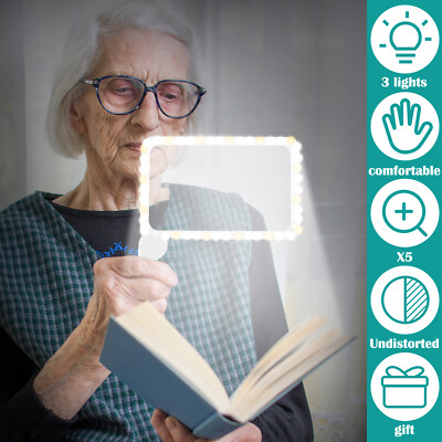 - 48 LED Lights with 3 Modes: When use this extra large magnifying glass for reading, you can adjust the lightness of 5X magnifier according to different situation, there are 48 LED lights (36 cold LED lights and 12 warm LED lights) with 3 modes (cold, warm & mixed) for you to choose from, providing you with bright and even illumination, no glare, so you can freely enjoy your reading at night or in bed. 3 AAA batteries are required for LED lighting mode (batteries are not included).