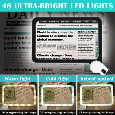- Wide Application: Adopts super large HD magnifying lens, this handhold magnifying glass providing crystal clear reading experience. Premium LEDs can last 100,000+ hours. Rectangular magnifying glass are perfect for reading books, newspapers, magnizanes, maps, documents, stamps, papers, small prints and so on.