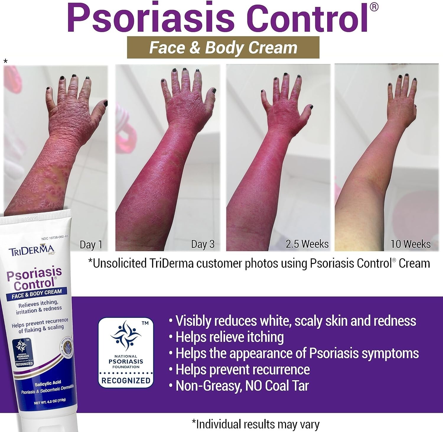 Experience the power of premium botanicals with our Fragrance-Free Psoriasis Control Lotion. This handcrafted formula is designed to visibly reduce psoriasis symptoms while soothing and healing irritated skin. With a blend of Salicylic Acid, Urea, Oat Protein, and Vitamins B & E, our lotion is non-greasy, fragrance-free, and paraben-free for a luxurious and effective skincare experience.