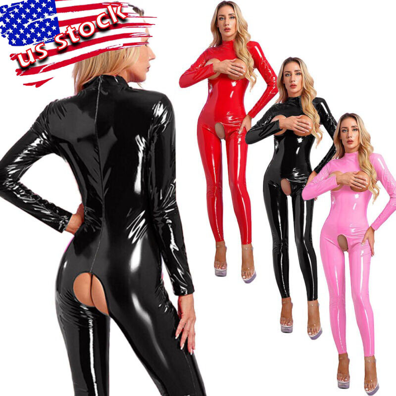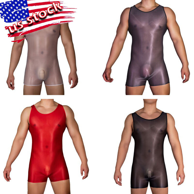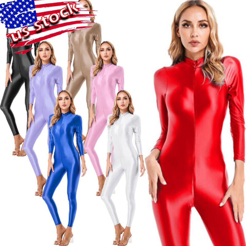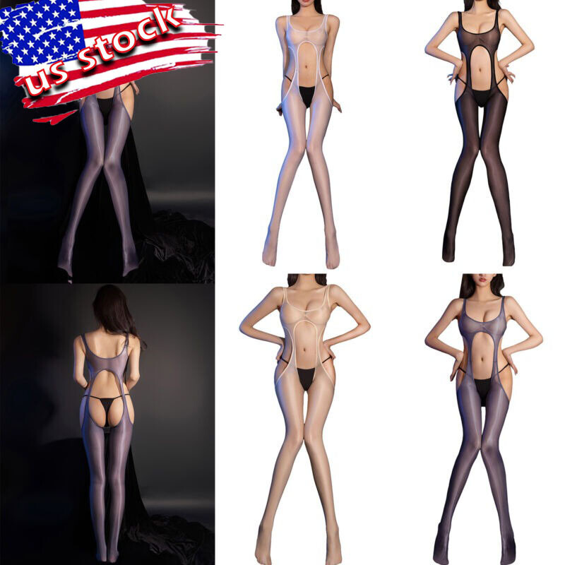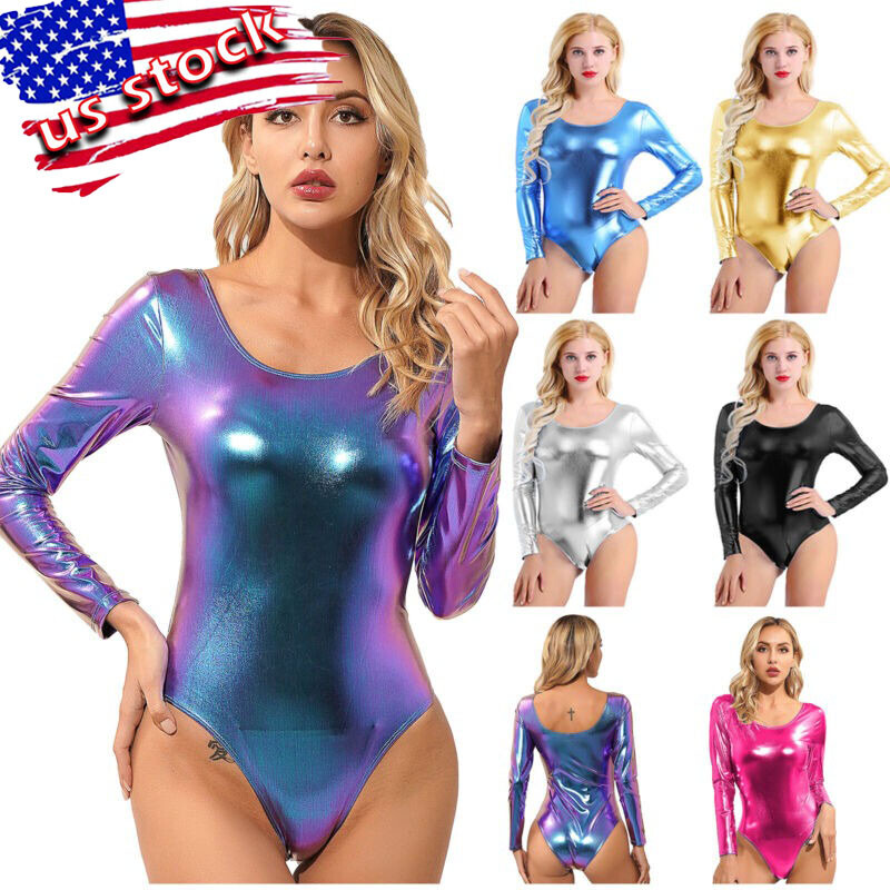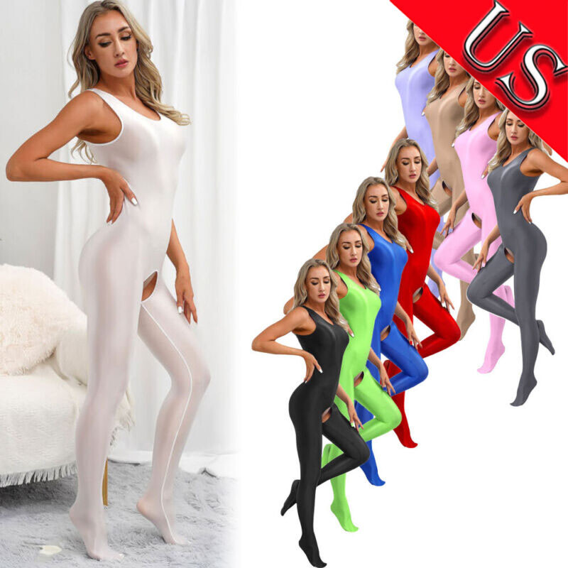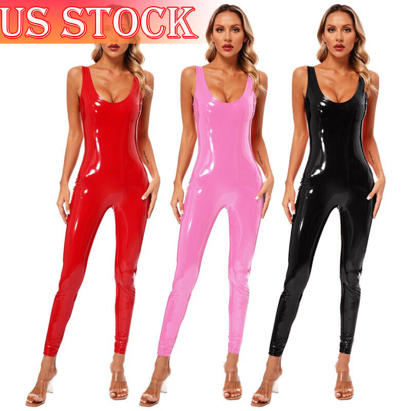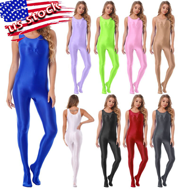 US Womens Sexy Sleeveless High Cut Bodysuit Glossy Monokini Swimsuit Leotard