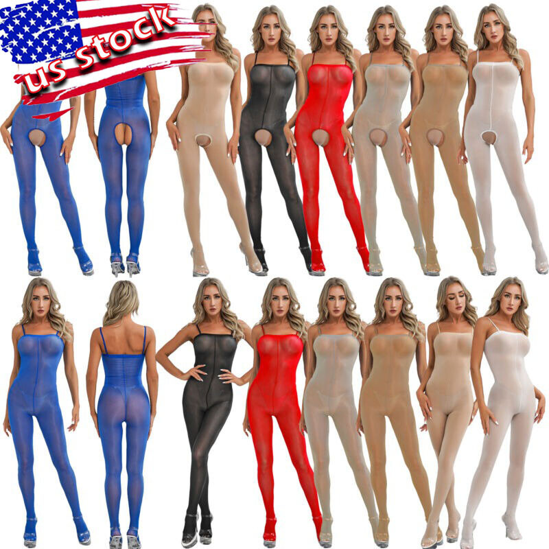Womens See-through Mesh Crotchless Bodysuit Hollow Out Halter Backless Leotard Lingerie Nightwear.