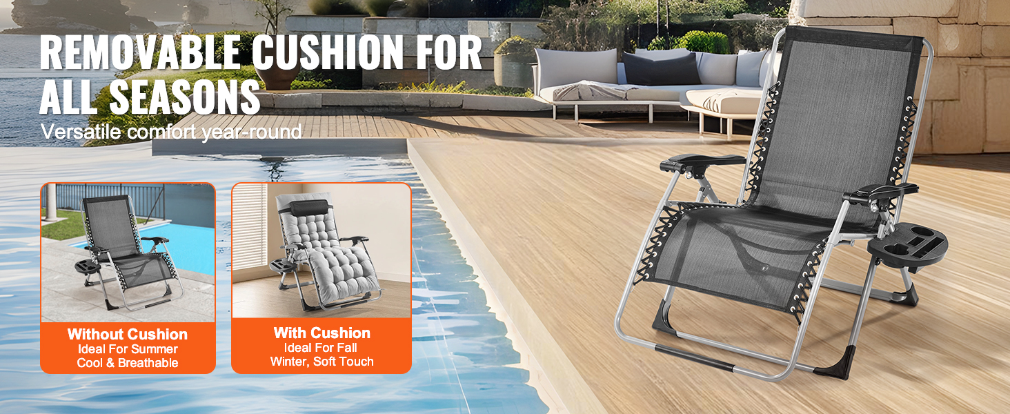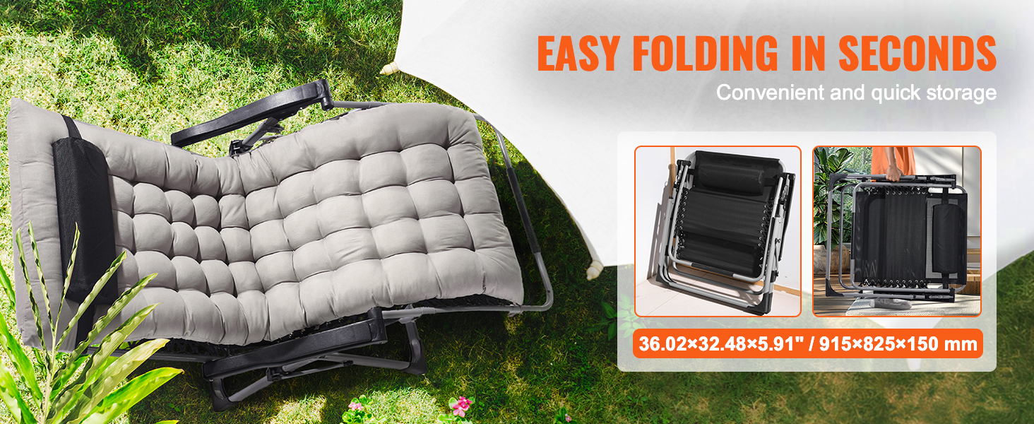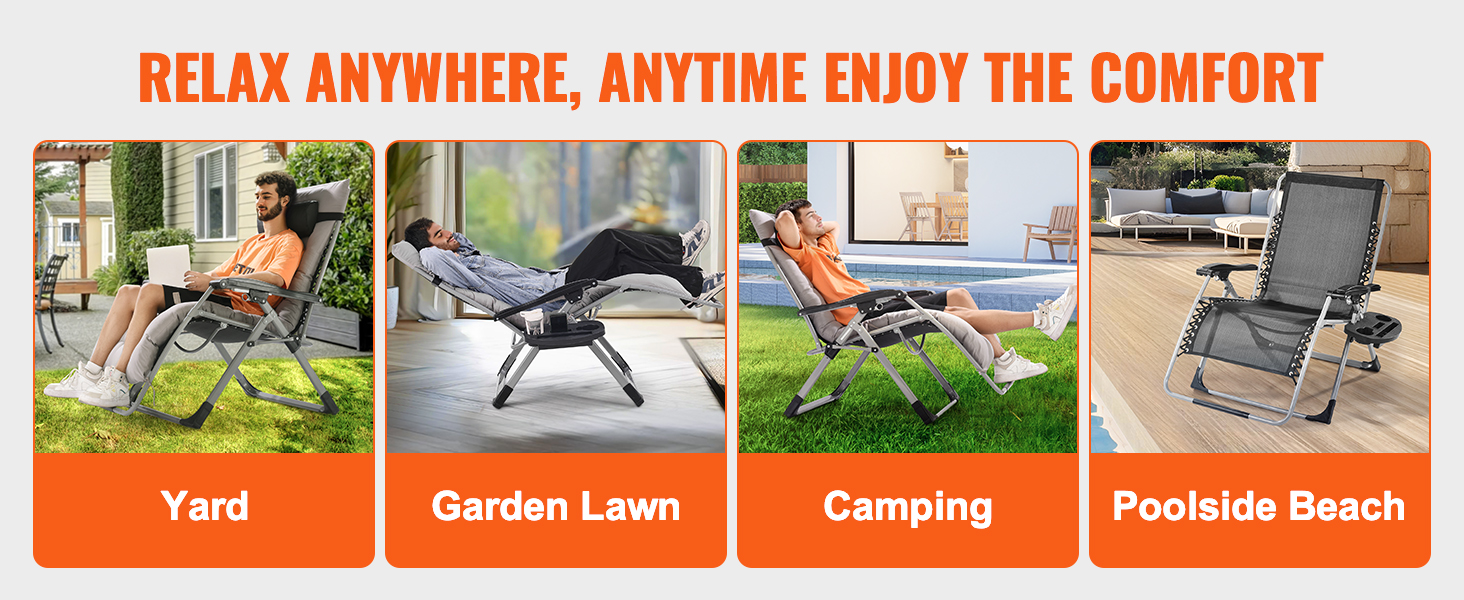 This folding zero gravity chair folds quickly for convenient storage and easy portability, making it a practical addition to your life.