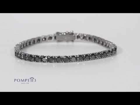 This classic women's bracelet features 45 round brilliant cut color enhanced genuine black diamonds. All diamonds are prong set in a 14k white gold with black plating polished assembled casting. The bracelet features a hinge to easily get on and off.