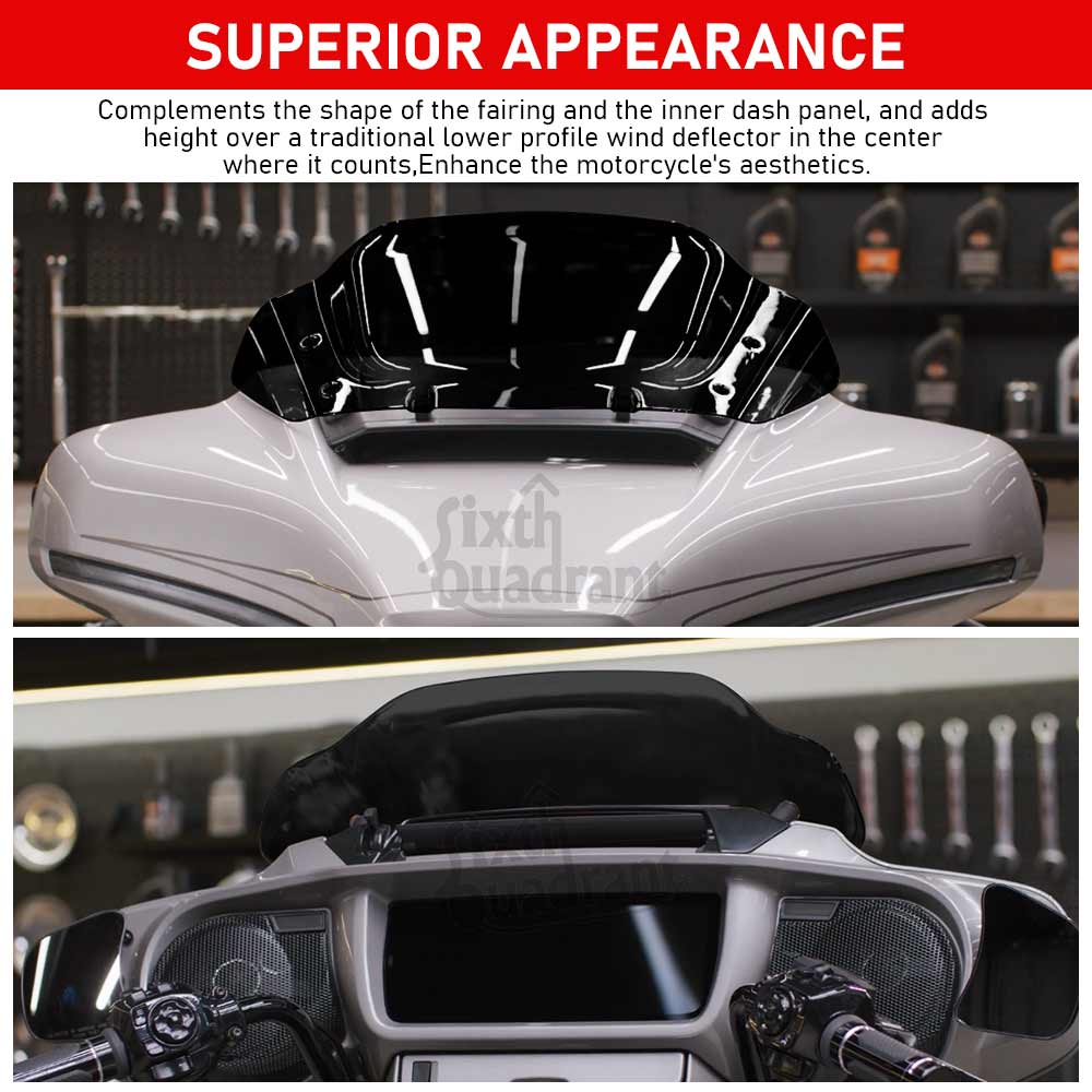 1.Complements the shape of the fairing and the inner dash panel, and adds height over a traditional lower profile wind deflector in the center where it counts,Enhance the motorcycle's aesthetics.