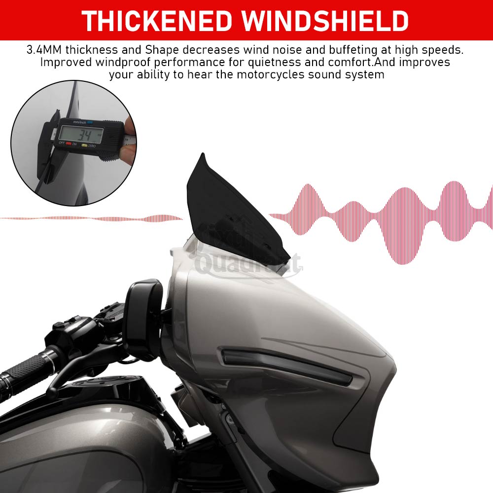 3.3.4MM thickness and Shape decreases wind noise and buffeting at high speeds. Improved windproof performance for quietness and comfort.And improves your ability to hear the motorcycles sound system