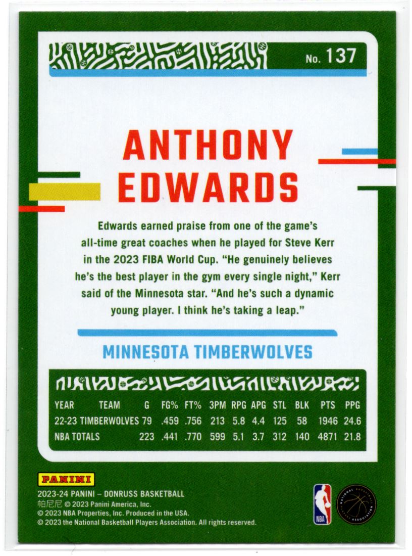 Anthony Edwards #137 2023-24 Donruss International Red/Gold Laser Minnesota