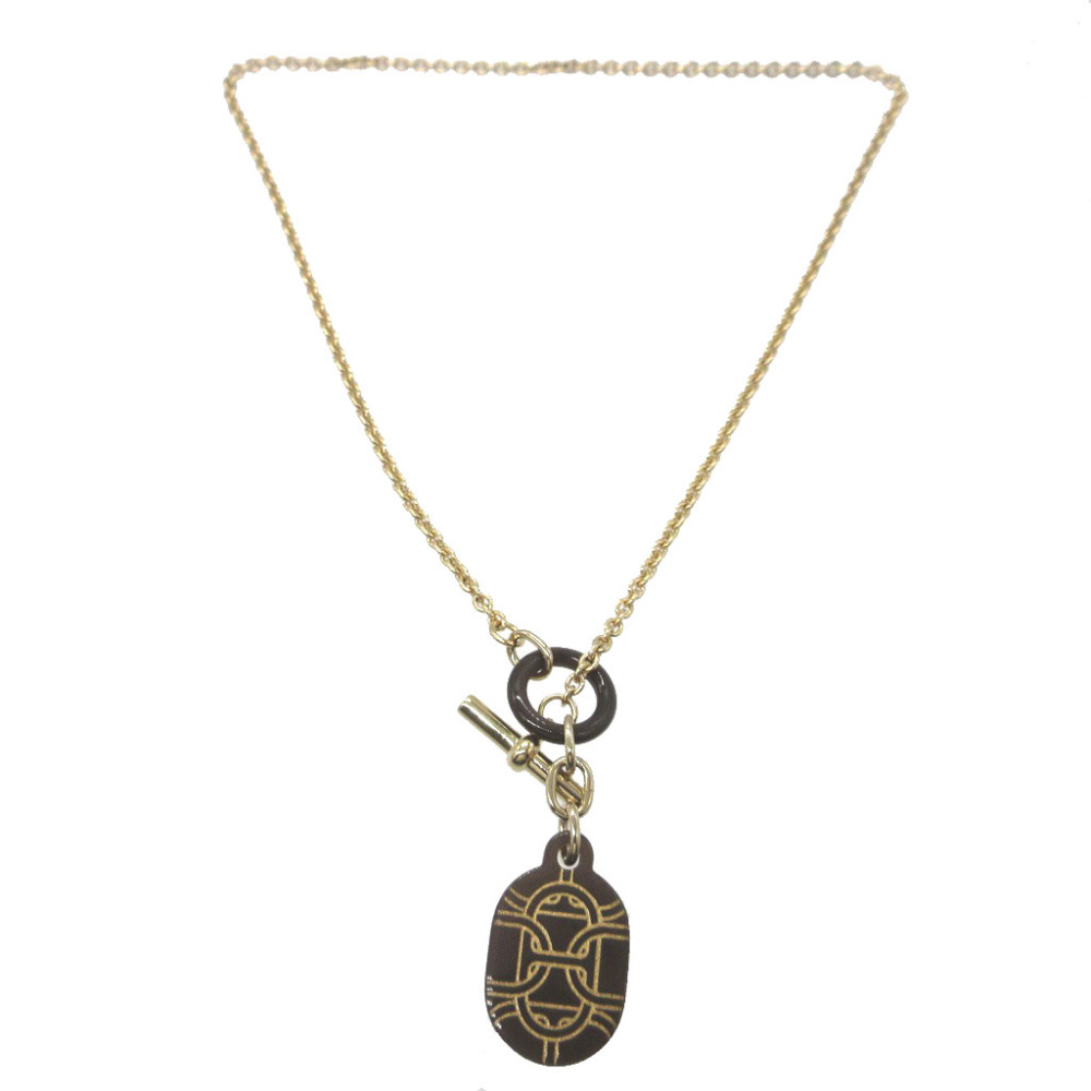 AUTHENTIC HERMES Dore Chaine d'Ancre Necklace Brown/Gold Metal 1457