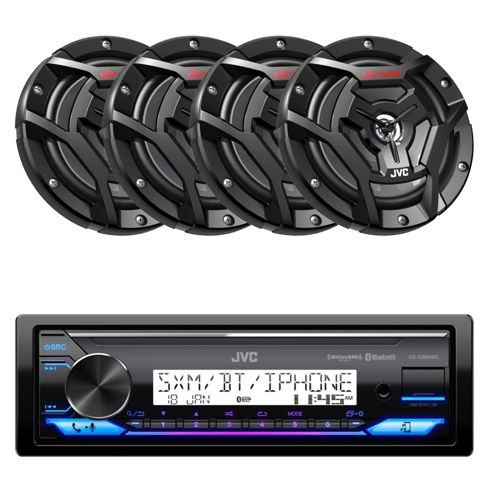 JVC KD-X38MBS Single DIN Marine MotorSports Bluetooth USB AUX LED Illumination AM/FM Radio Stereo SiriusXM Ready Receiver JVC - KD-X38MBS JVC KD-X38MBS marine digital media receiver is outdoor-ready, thanks to a conformal-coated circuit board that resists moisture damage. It's white-background display cuts through glare and makes this receiver ideal for out door and open-top vehicles. Also features built-in Bluetooth, an option for satellite radio, and plenty of connections for your digital devices, you'll have lots of music options on the road, trail, or water. General Features: