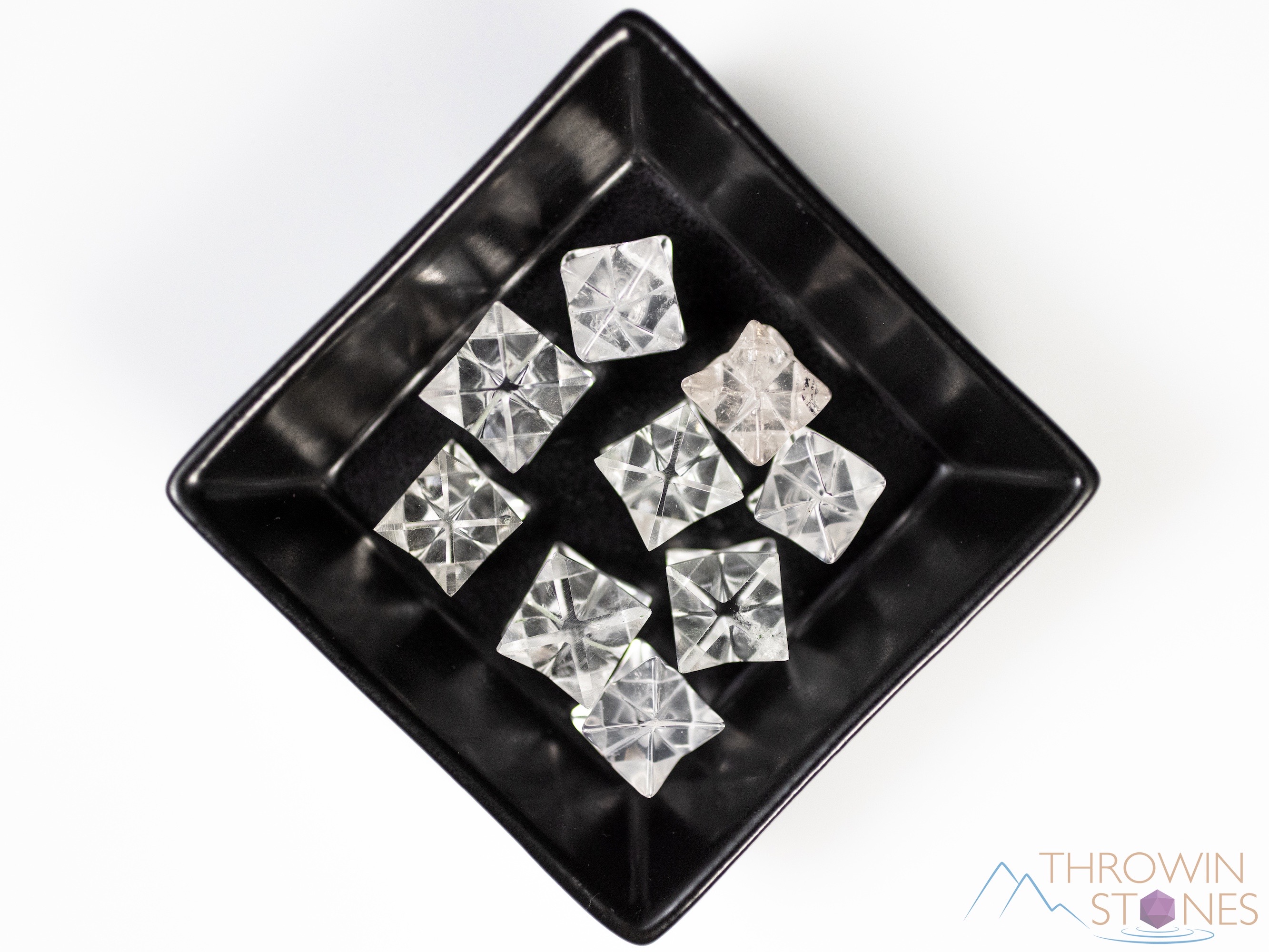 These are hand carved items and may not be exactly scientifically accurate representations of the shapes. Clear Quartz has natural white inclusions inside so they will not all be perfectly clear.