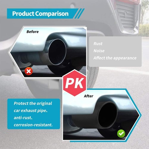 Superior construction: Made of stainless steel, our exhaust tip features high strength, durability & corrosion resistance. Thicker inner wall design makes your car sounds rumble and crackle, so you can enjoy the driving pleasure brought by the sounds, and black powder coated finish makes your vehicle look elegant and mysterious