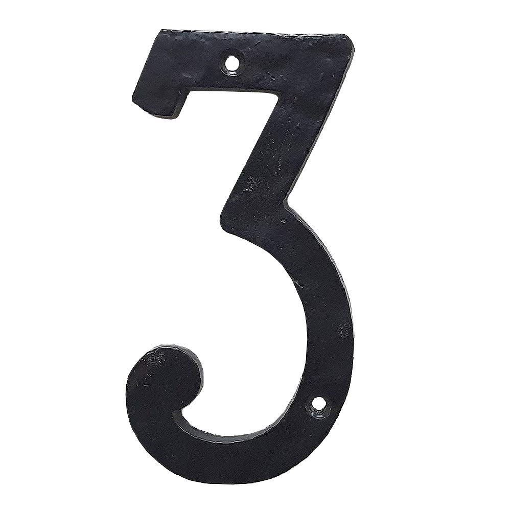 Cerus Rustic Black Hammered Solid House Numbers For Outside Cast Iron Door House Numbers, 5.5 inches, Outdoor Decor, Black Mailbox Numbers (Number 3)