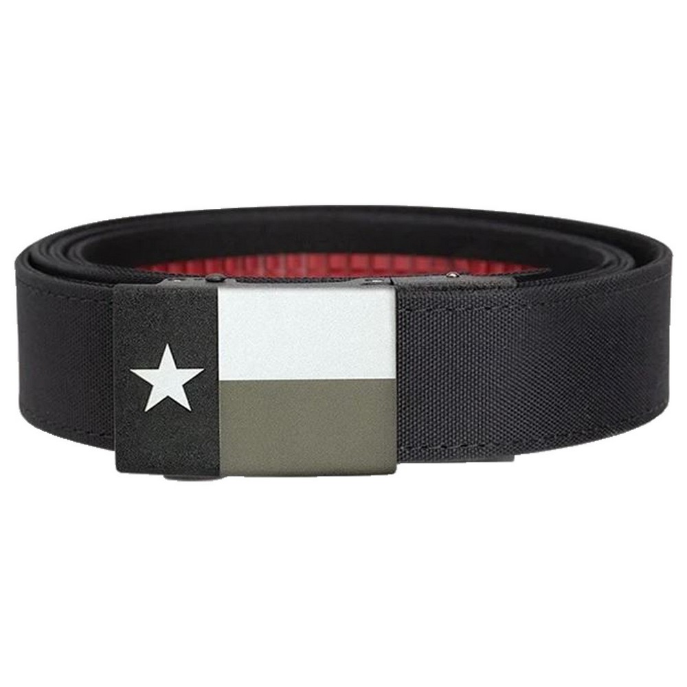 Wear the Texas Guardian EDC Nexbelt with pride, or give one as a gift to a Texan! While most leather gun belts have 1" adjustment between the holes, the Nexbelt EDC Belt features a ratcheting system that adjusts in 1/4" increments for a comfortable, custom fit. The reinforced nylon belt strap provides the stiffness you need for every day carry of your firearm and gear. For extreme durability, the buckle clasp has backup set screws for a reliable hold. A powder-coat finish gives the buckle a durable, wear-resistant finish and the laser etched Texas flag looks great. Whether you are a Texan, or know a Texan, this is a great way to show Texas pride.