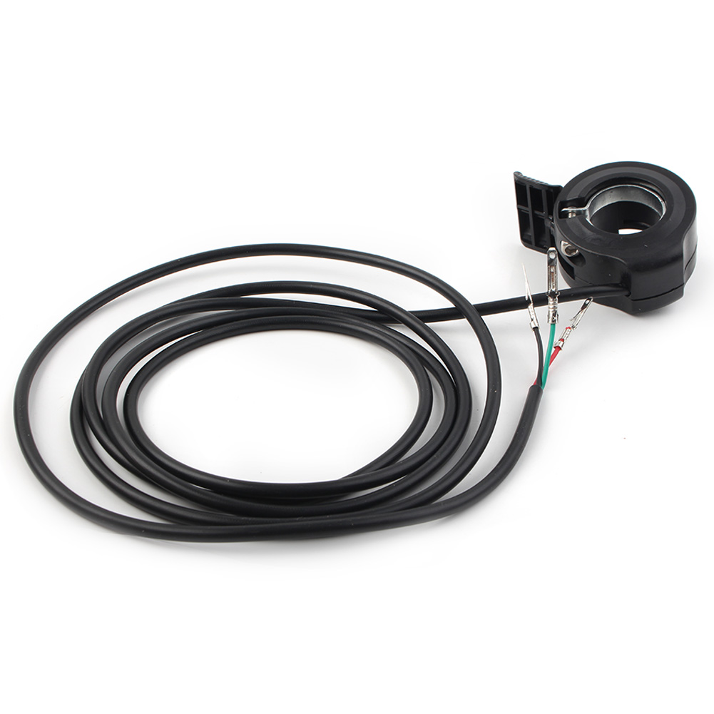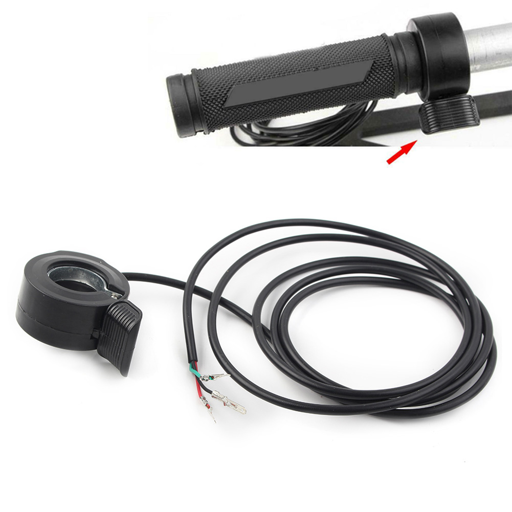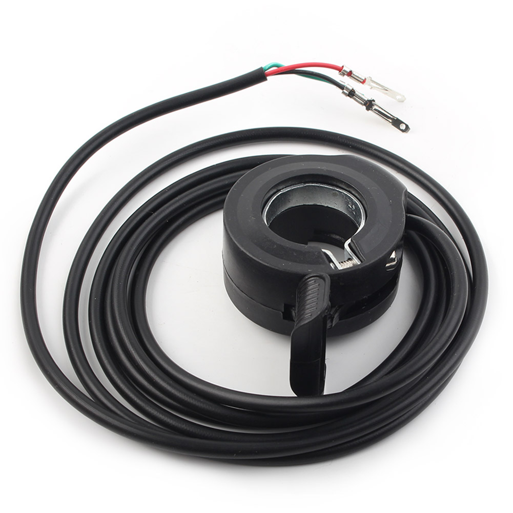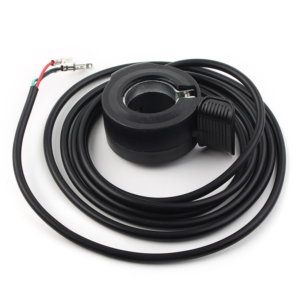 22mm 7/8" Thumb Throttle Speed Control Assembly for E-Bike Electric Bike Scooter Specification: Condition: 100% Brand New Material: Plastic Installation Position: Left or Right Handle Color: Black Cable Length: Approx. 1.6 m / 63 inch 3 Wires: Black (Negative Electrode), Green (Signal), Red (Positive Electrode) Package Included: 1 x E-Bike Throttle Fitment: Compatible with most electric bike with 7/8" handlebar. Features: *Proper profile design will not interfere with brake levers or shifters. *Providing steady and sensitive control of speed, working well on the left or right side of handlebar. *1.6 m cable wire enables you to fit it on anywhere on your motocycle. *The wires and interfaces are durable, and ensure low malfunction during the long time use. *Simple installation and easy to use. Note: *Due to the lighting and screen settings, the real color may slightly different from the picture. *Please allow slight manual measurement deviation for the data.
