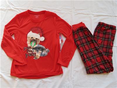 BRAND NEW WITH TAGS ATTACHED! These PJs from Komar Kids are perfect for Christmas. Features an adorble Yorkie dog wearing a Santa hat and holding a lollipop. Reads Yum Yum Yum. Pants measure 38" long. Top measures 23"