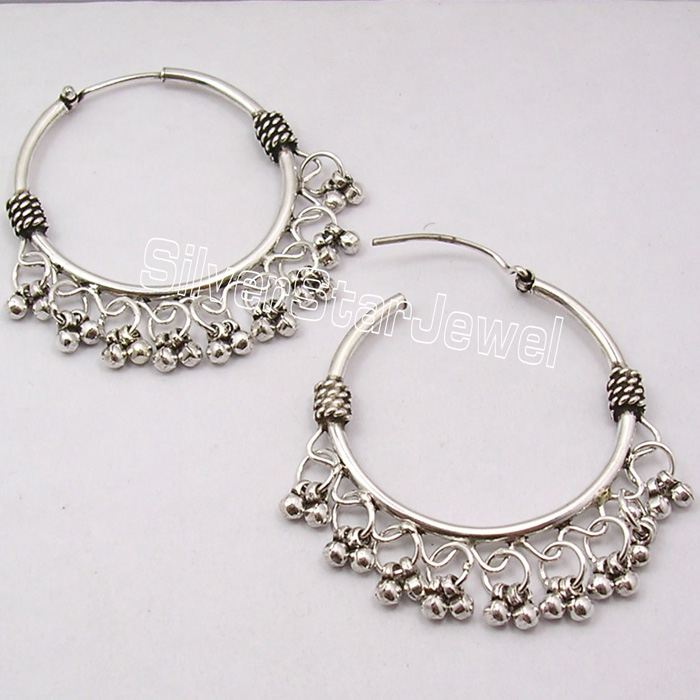 Clearance Outlet | 925 Sterling Silver STYLE ETHNIC HOOP Earrings 1.7"