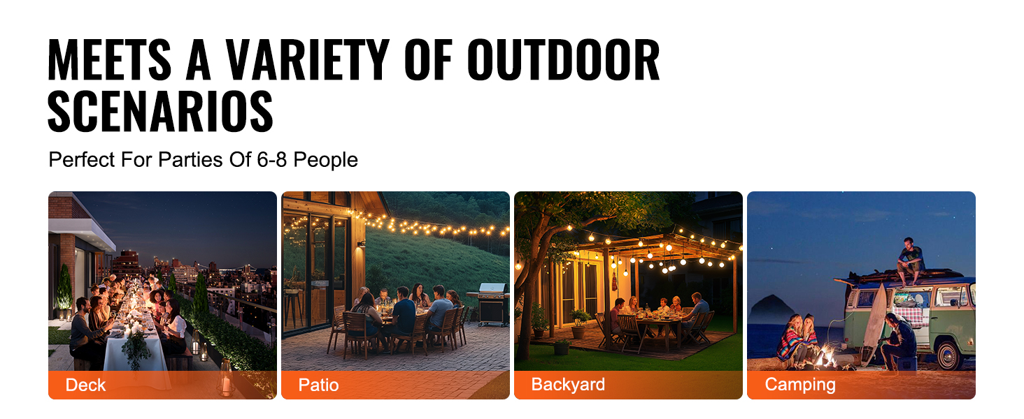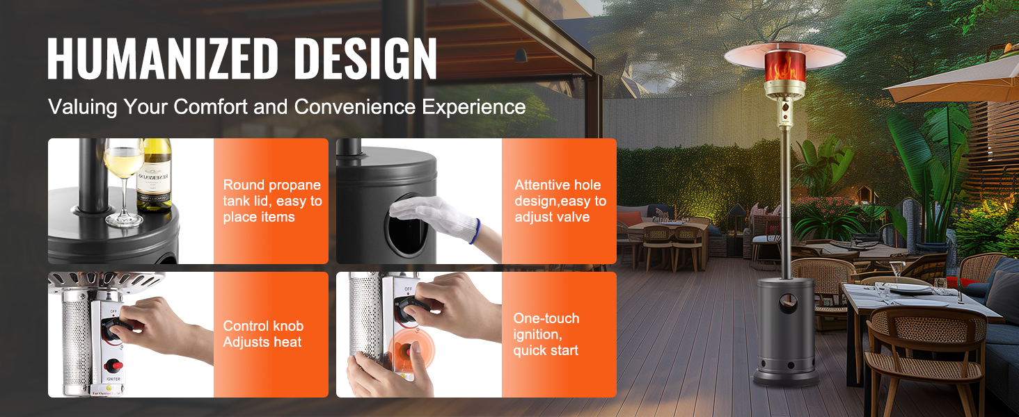Wide Application: Perfect for gatherings of 6-8 people, this propane heater is ideal for patios, courtyards, guesthouse gardens, and outdoor camping, offering an excellent heating solution for your outdoor space.