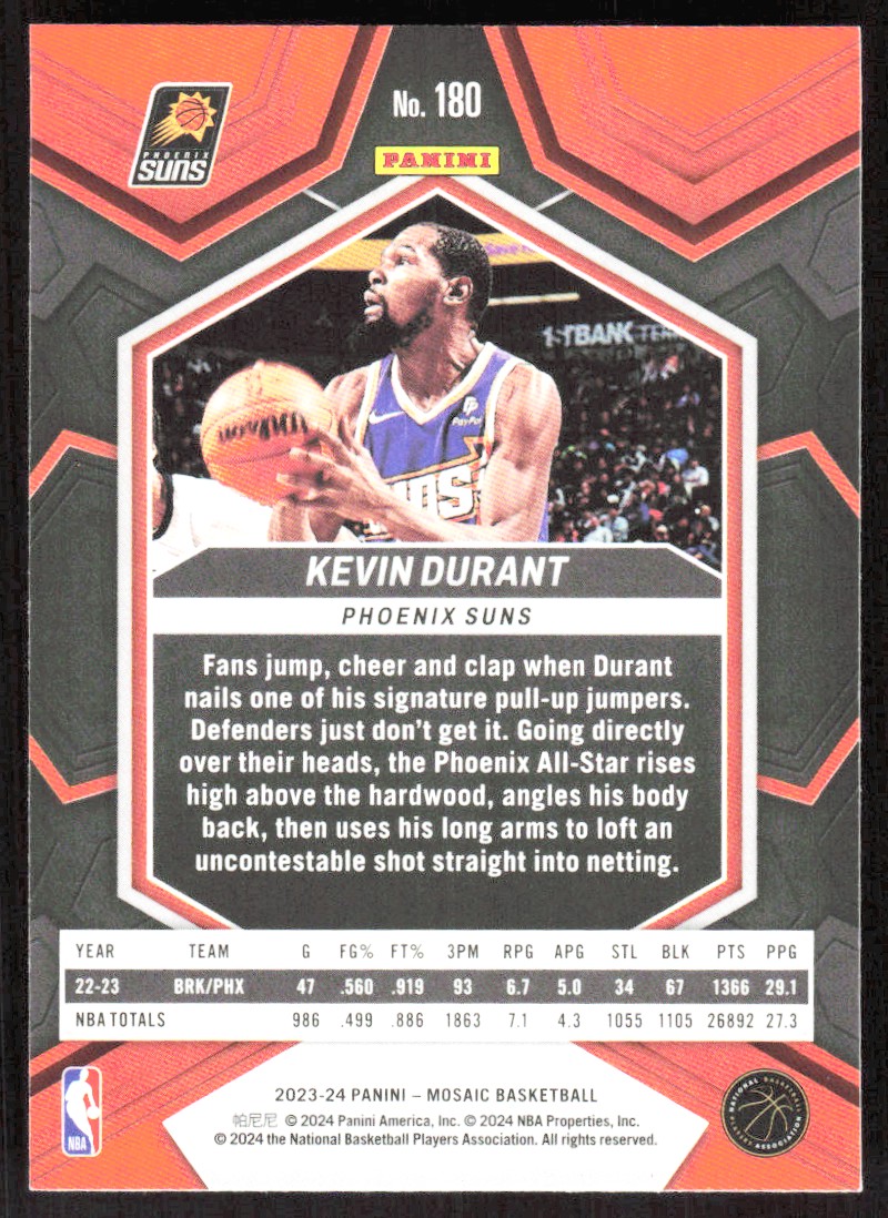 2023-24 6646D Panini Mosaic Kevin Durant Phoenix Suns #180