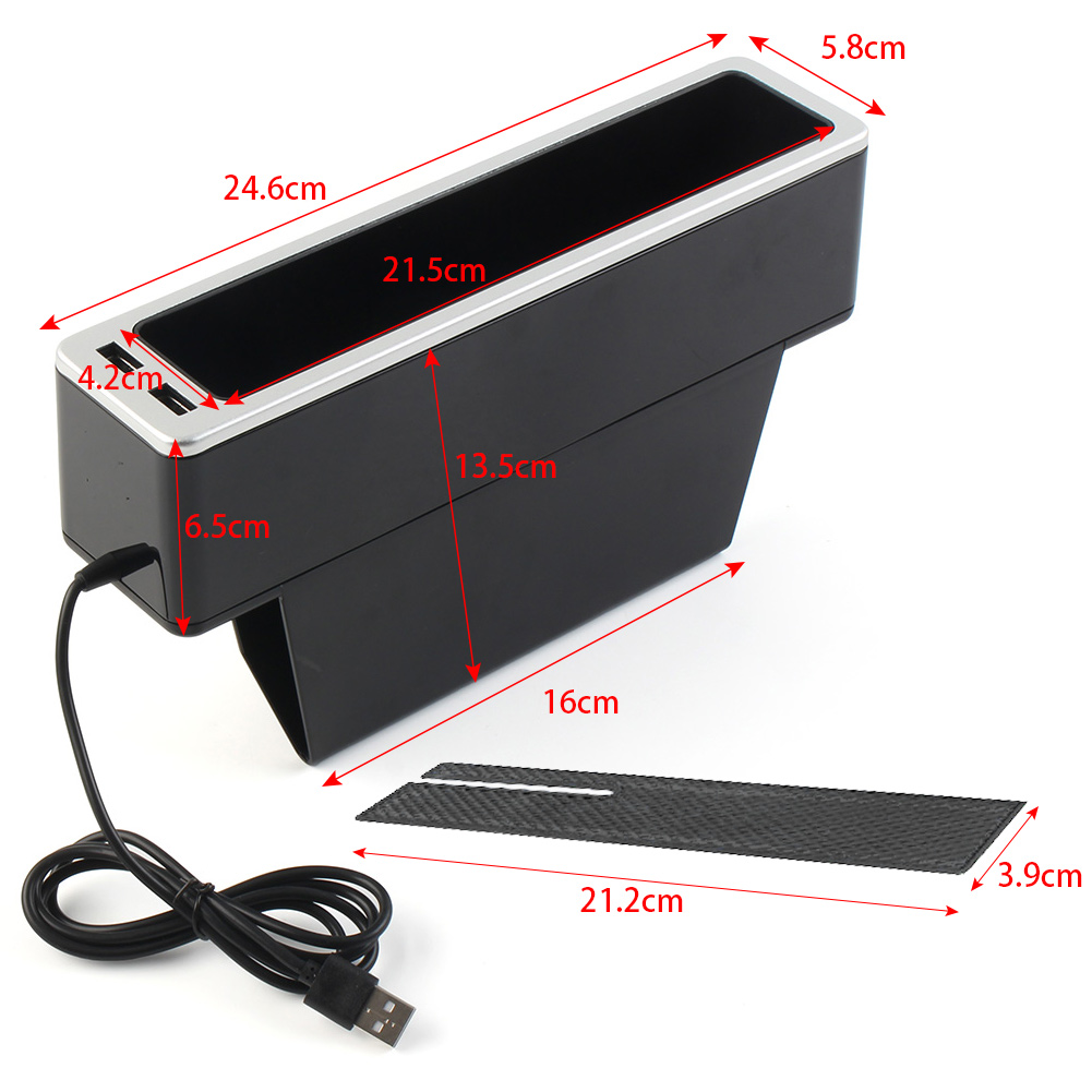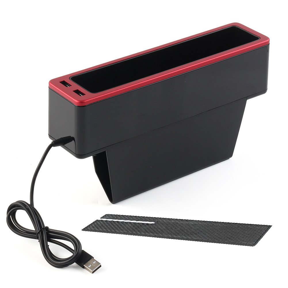 Car Seat Organizer Seat Crevice Storage Box Multifunction Gap Slit Filler Holder For Wallet Phone Slit Pocket Features: 1. Designed with dual USB charging port. 2. Environmental protection, no smell, large capacity classification. 3. Easy to install: Just insert the car storage box between the center console and the seat to use. 4. Choose high-quality materials, non-slip and wear-resistant-stable, high stability, to provide you with comfortable and convenient car life. 5. Space saving: You can carry phones, drinks, keys, cards, cigarettes, driver's license, money and other items in the box. Very convenient to use. Fills the gap between the car seat and the center console. The console and organizer do not interfere with seat belt use at all. Specification: Condition: 100% Brand New Material: ABS(Box)+Silicone(Pad) Color: Gray, Silver, Red Placement on Vehicle: Front, Left Compatibility: Universal Installation Method: Insert Directly Into The Gap Fitment: Suitable for most cars. Before purchasing, please make sure your car seat clearance fits perfectly with this item. Packing Included: 1 x Car Seat Gap Storage Box 1 x Pad Notes: 1. All dimensions are measured by hand, there may be small deviations. 3. No installation instruction included, professional installation is highly recommended. 4. The real color of the item may be slightly different from the pictures shown on website caused by many factors such as brightness of your monitor and light brightness.