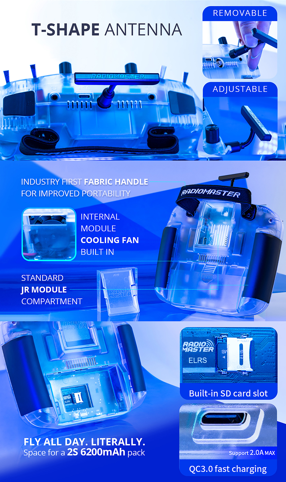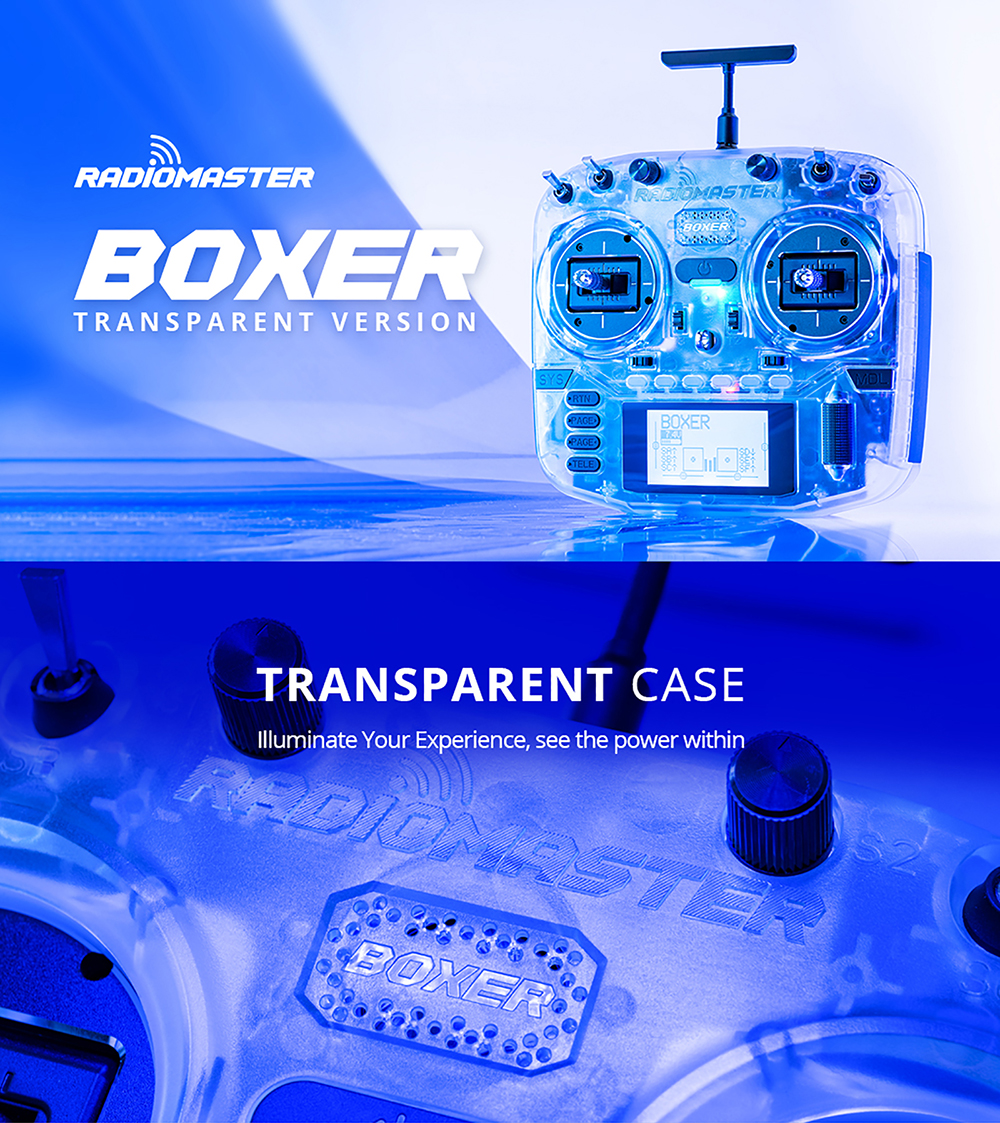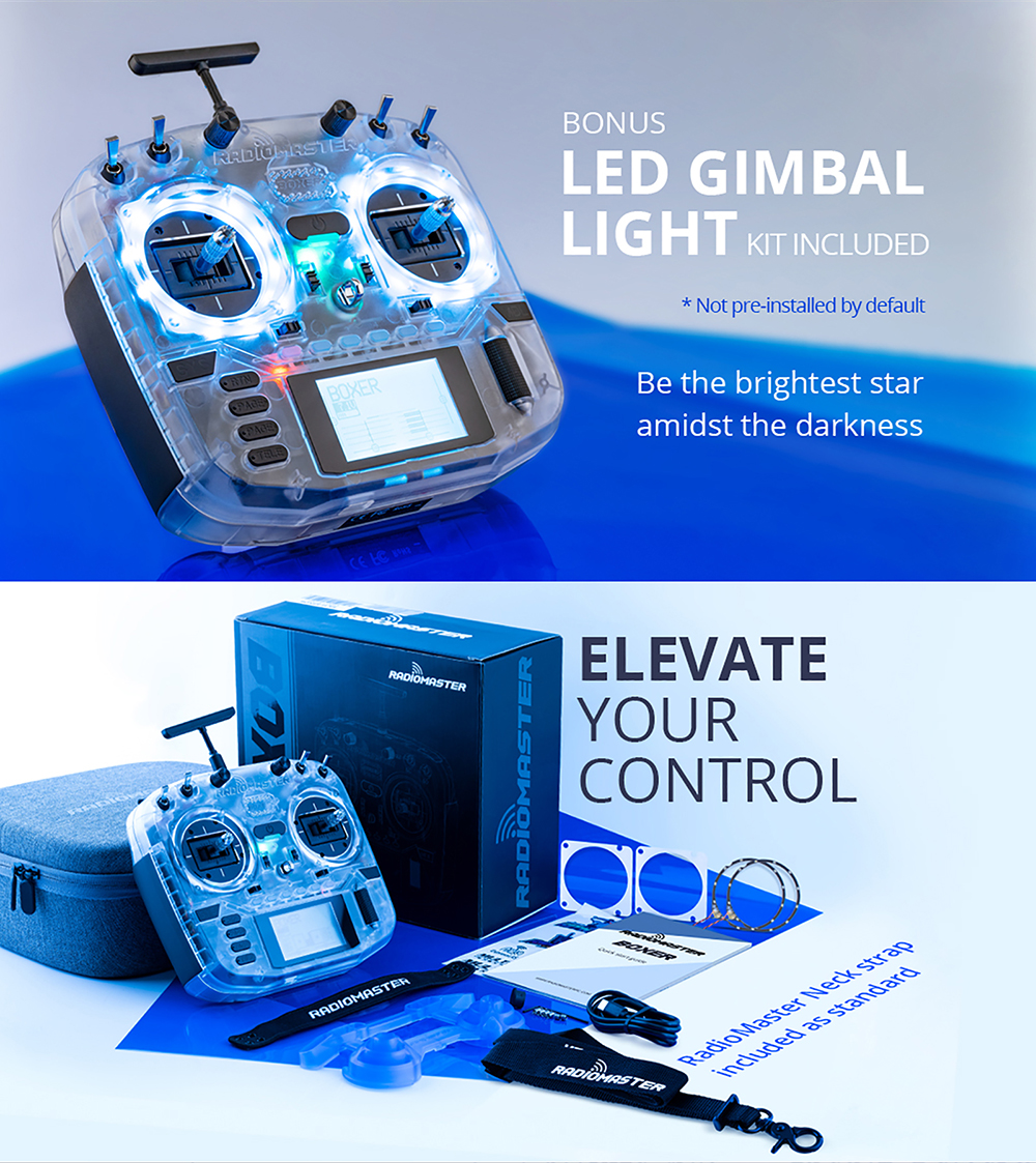 10.Special transparent version radio with white Gimbal LED set and RadioMaster Neck Strap included
